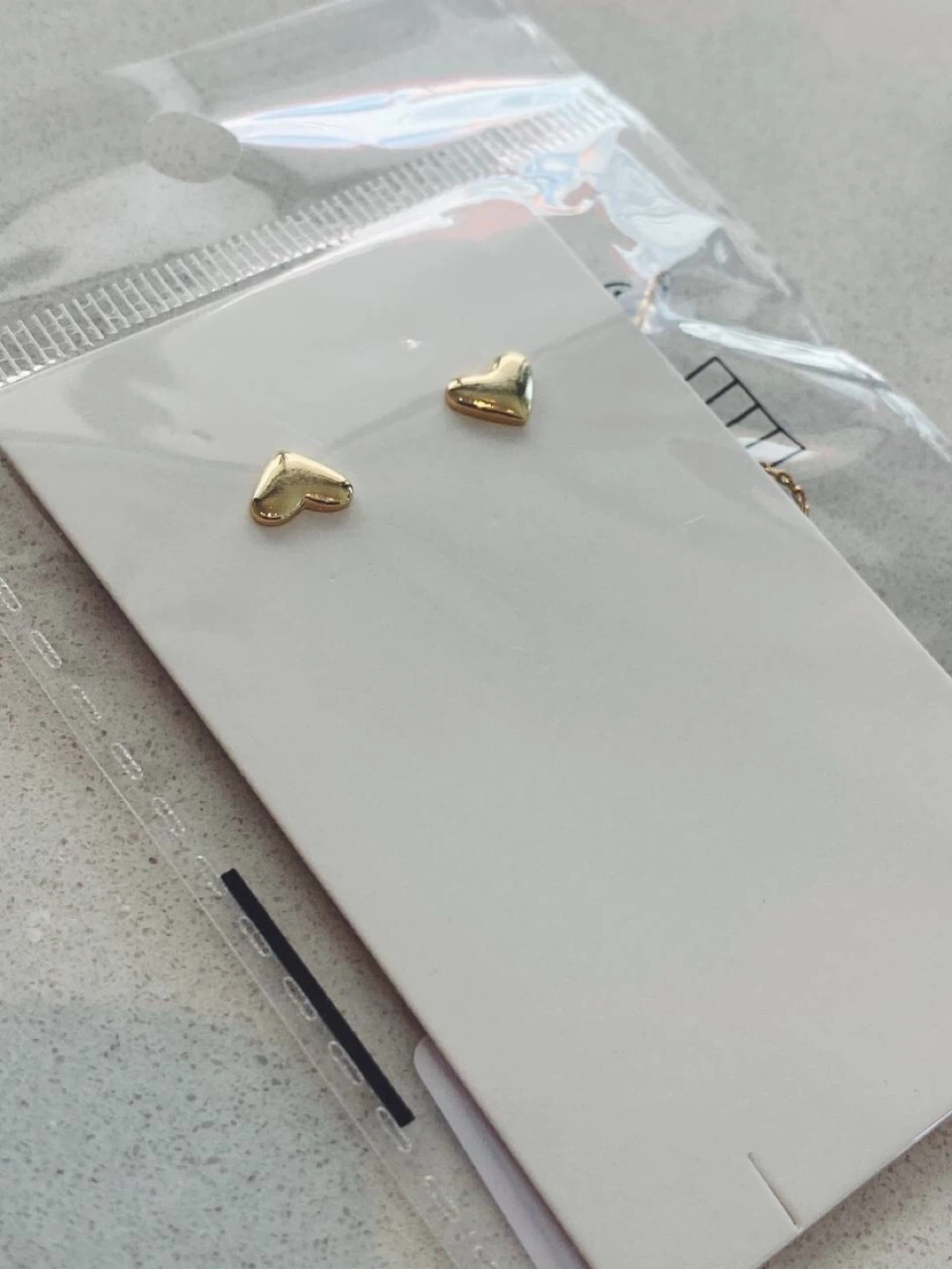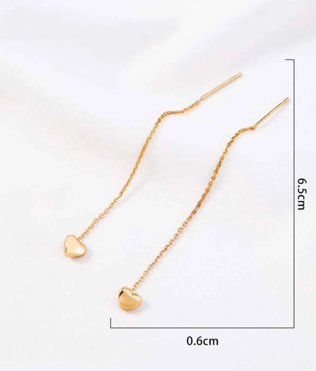 Adorable gold heart dangle earrings. Features small heart charms and delicate chain. Perfect for everyday wear or special occasions.
