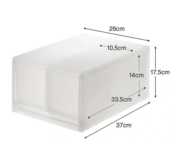 Made with a translucent polypropylene material that makes it easy to identify the contents from the outside. It is a convenient size for organizing small items and can be stacked even if they are turned back and forth. Comes with a set of 4 partitions (W26 x D37 x H17.5 cm, each drawer has 4 partition slots 6 cm apart.)