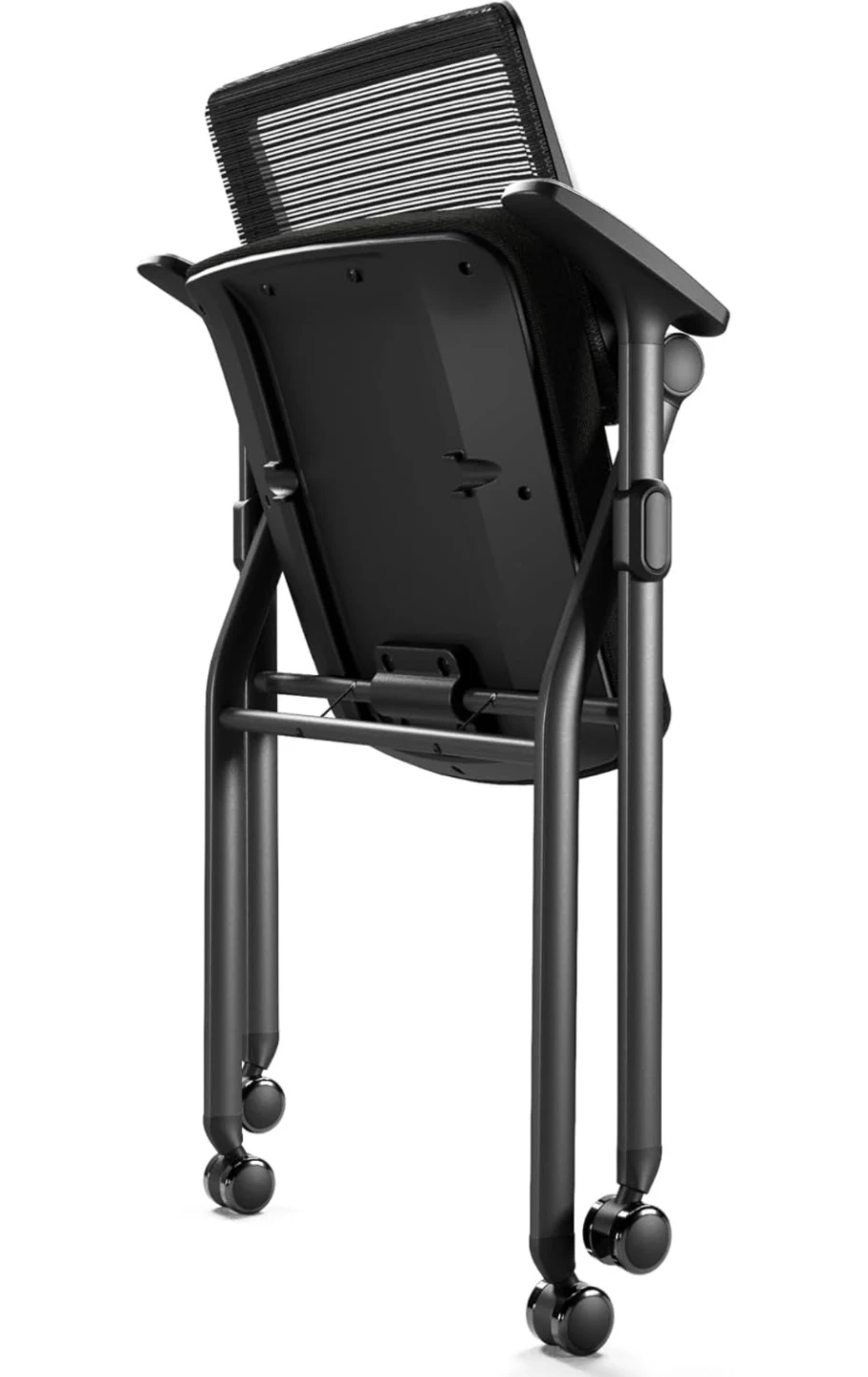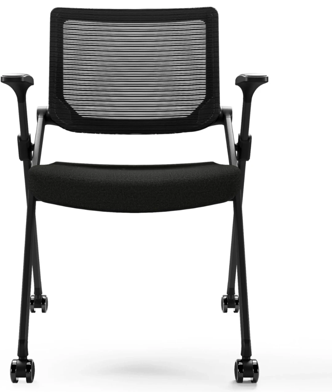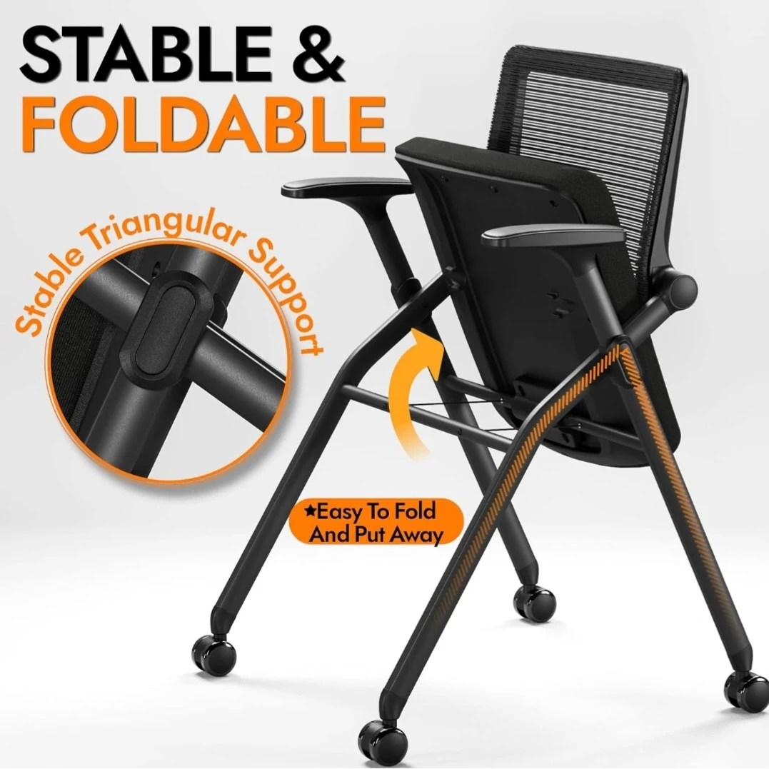 Foldable Office Chair with PU Wheels-Ergonomic Mesh Bouncing Back, Stackable Conference Room Chair, Office Guest & Reception & Meeting Chair