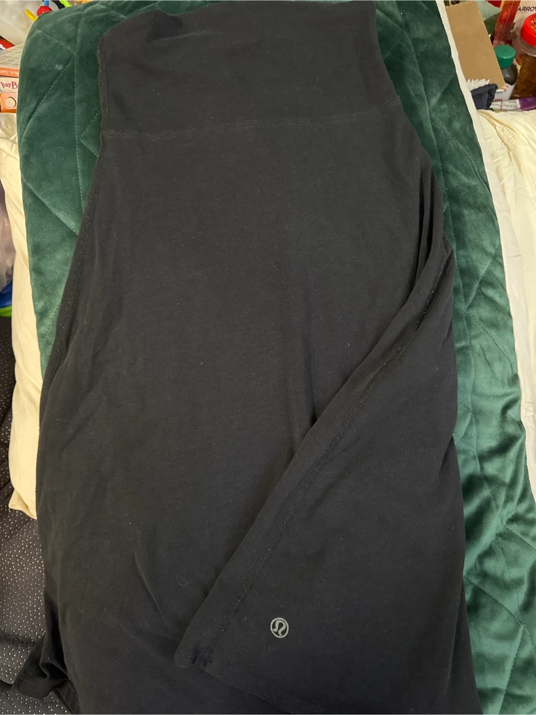This is a black Lululemon yoga dress. It's made of a comfortable, stretchy material perfect for athletic activities. The waistband is designed for a secure and supportive fit.