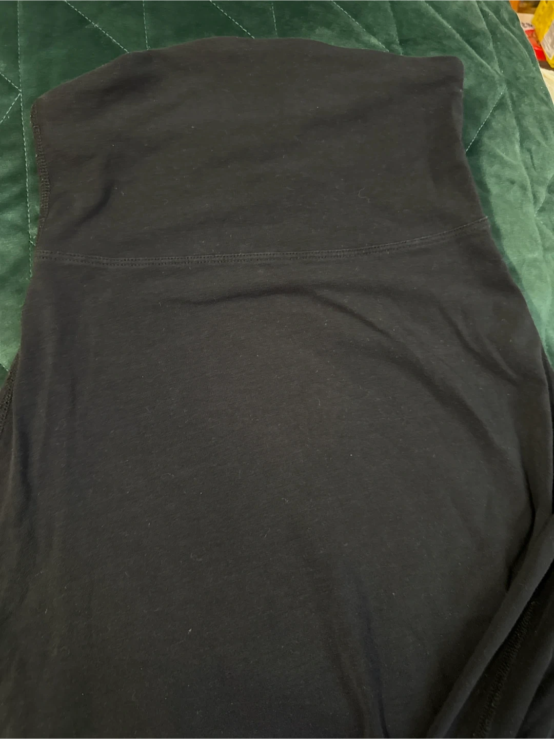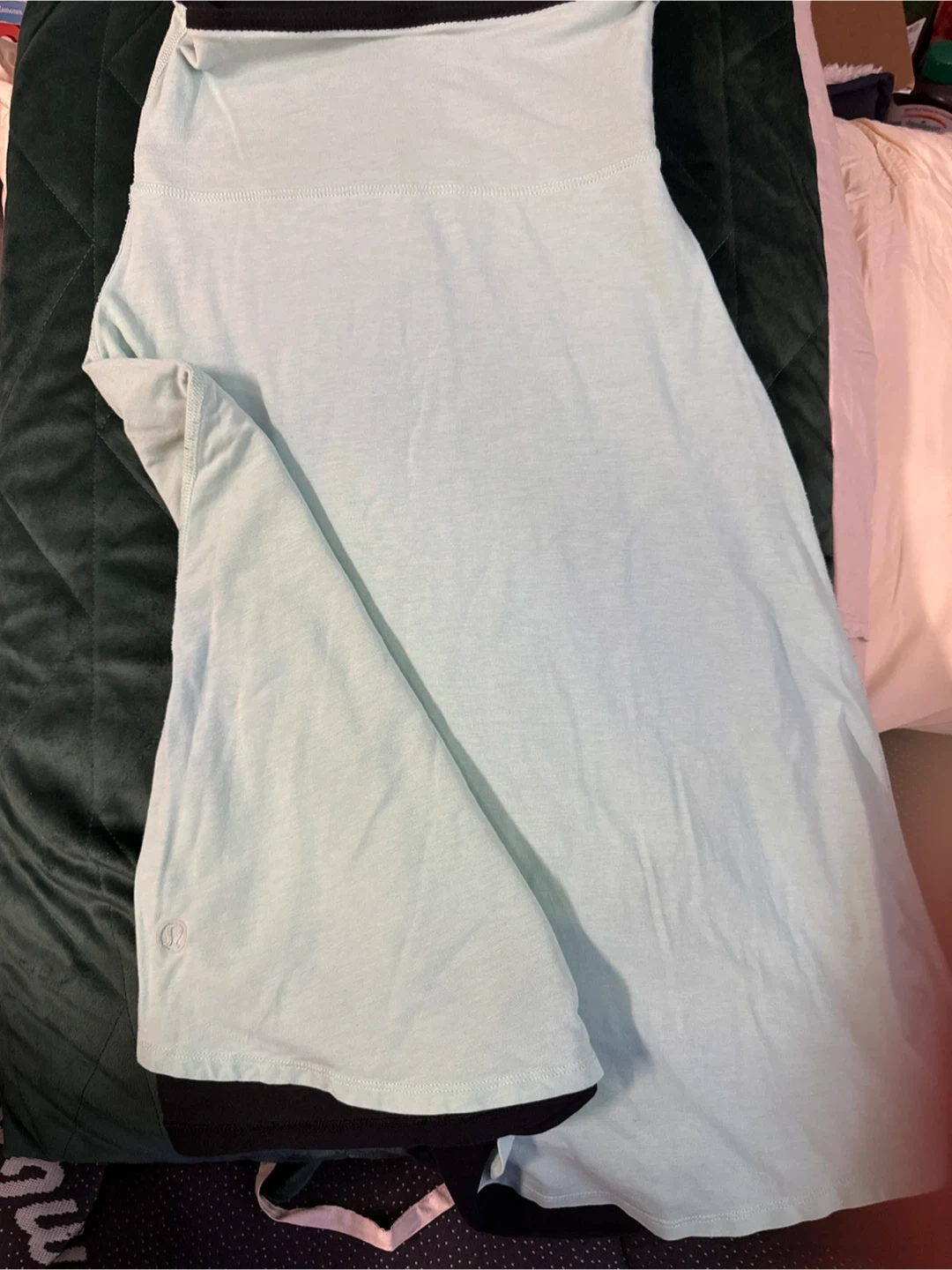 This is a black Lululemon yoga dress. It's made of a comfortable, stretchy material perfect for athletic activities. The waistband is designed for a secure and supportive fit.