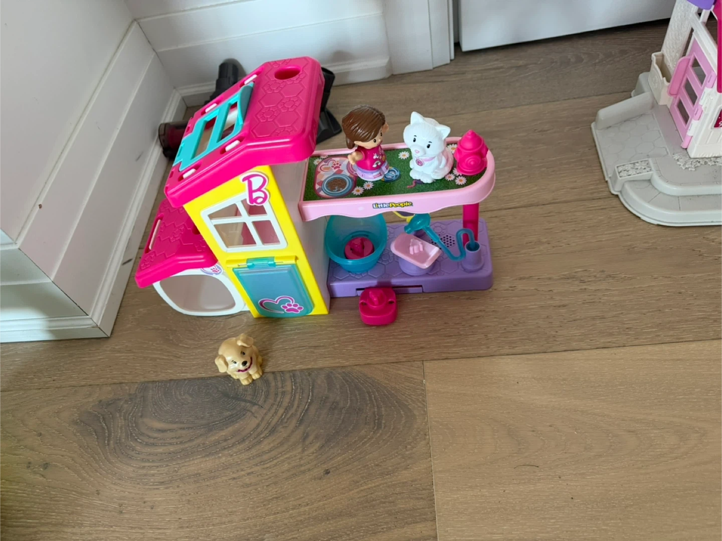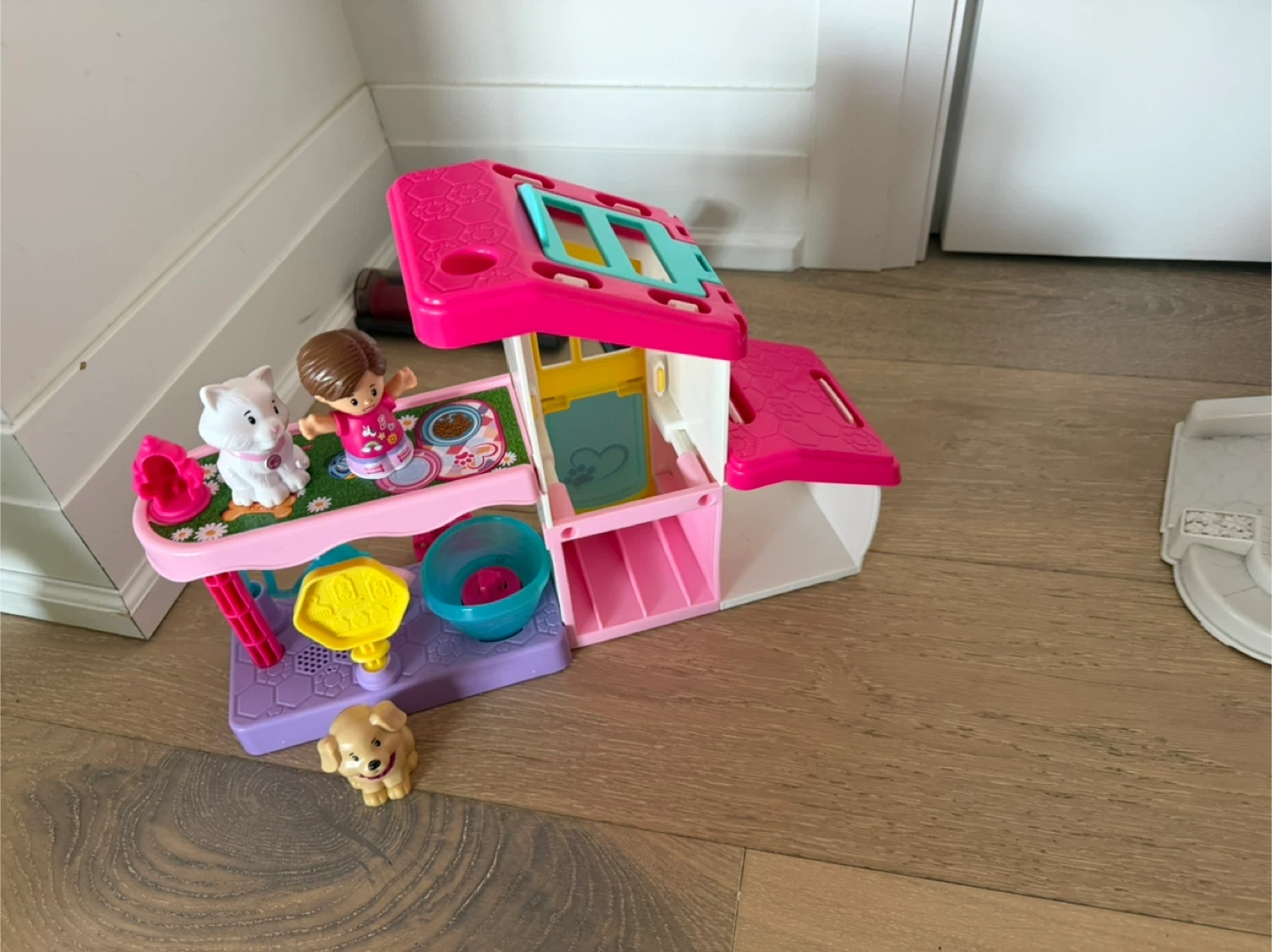 This Little People Pet Vet playset comes with a veterinarian figure, a dog and a cat. It's great for imaginative play. It has interactive features for little hands.