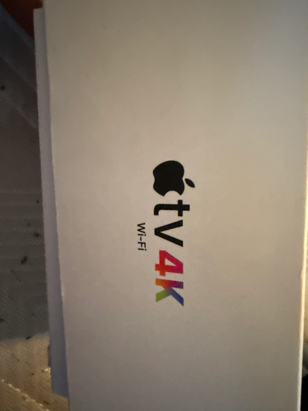 Apple TV 4K streaming device. 3rd generation. 64GB of storage. Wi-Fi connectivity. Includes box and device.