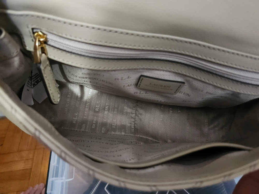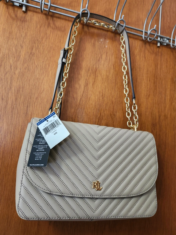 This is a brand new Ralph Lauren leather handbag in beige, featuring a stylish chevron quilted design and elegant gold-tone chain detailing. It's the perfect accessory to elevate any outfit, adding a touch of sophistication and class. Features: * Brand: Ralph Lauren * Material: Leather * Colour: Beige * Design: Chevron Quilted * Hardware: Gold-Tone Chain