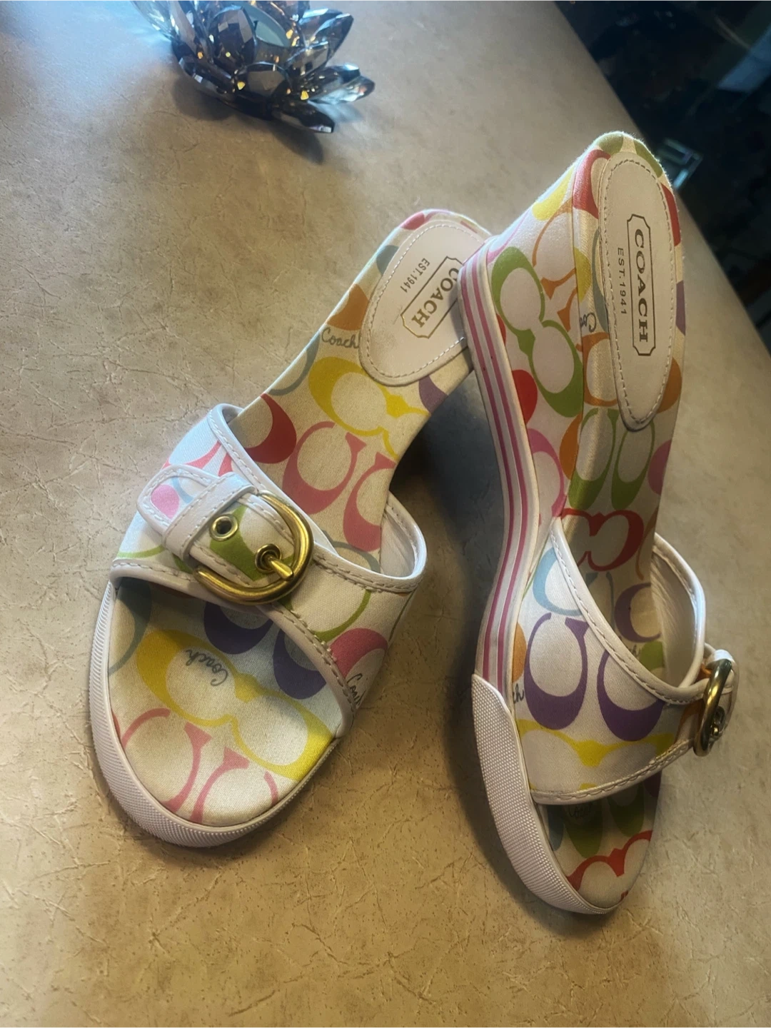 👡Coach Perry Multicolor C Logo Slide Sandals Size 8