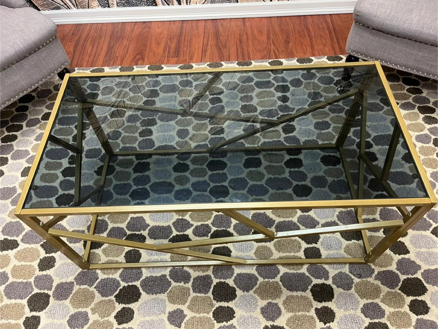 New Modern Gold Metal Frame Glass Top Coffee Table