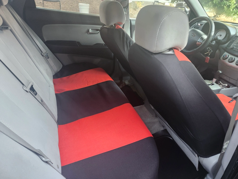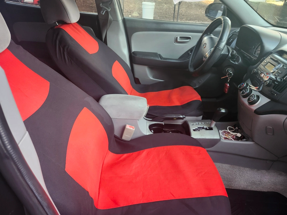 Engine and transmission runs smooth with only 146k 4 cylinder Ac and heater works great no leaks no engine lights on dashboard everything works good. Selling a Hyundai Elantra sedan. It has seat covers and chrome wheels.