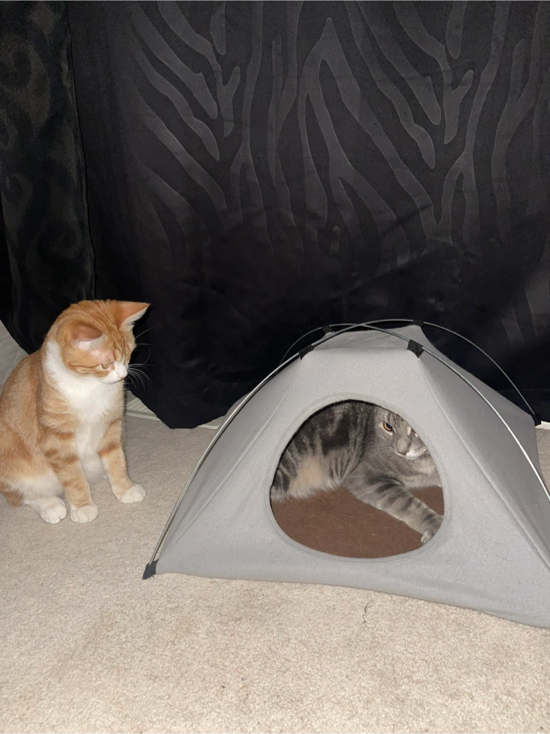 Selling a grey cat tent! It's in great shape and perfect for your furry friend to relax and play in. The tent is lightweight and easy to move around the house. Your cat will love having their own little space!