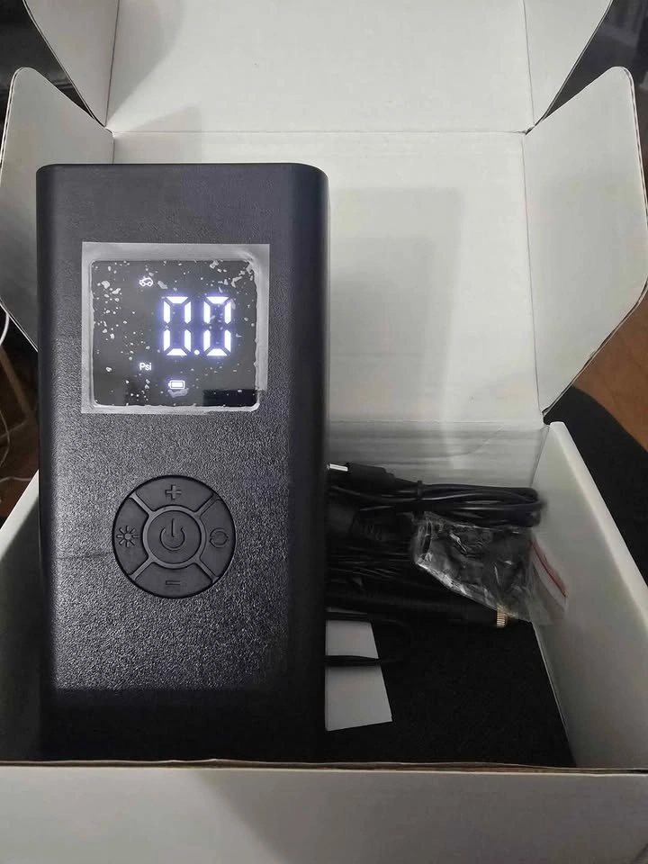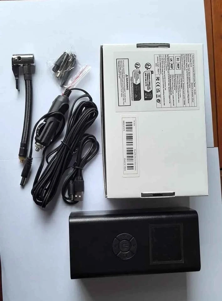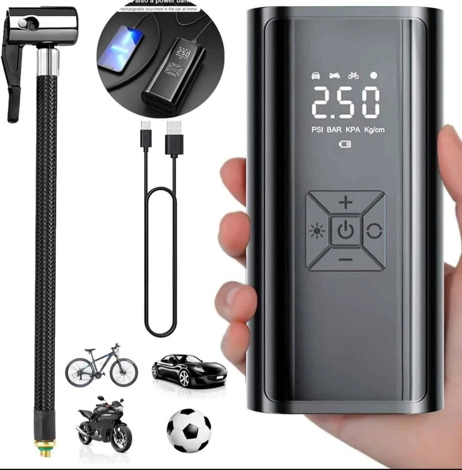 Brand new Digital Air Compressor with Automatic stop feature. 150 PSI, 6000 mAh Battery. Great build quality. Dual Action - Corded and Cordless. Torch included.