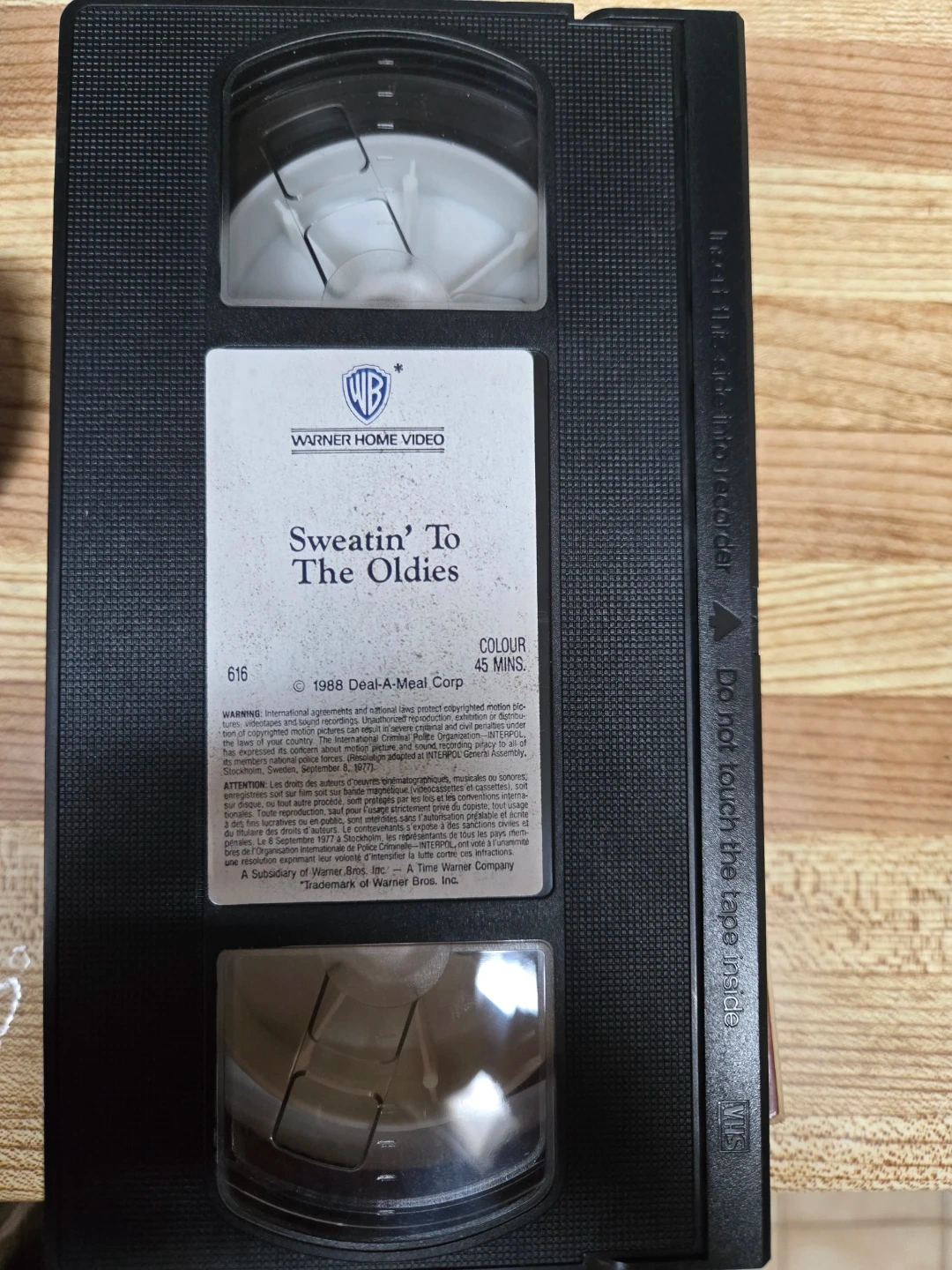 Sweatin' To The Oldies VHS tape from Richard Simmons. This video features a fun workout with music from the 50s and 60s. It's designed to get you dancing in the streets. Perfect for anyone looking to add more fun to their exercise routine!