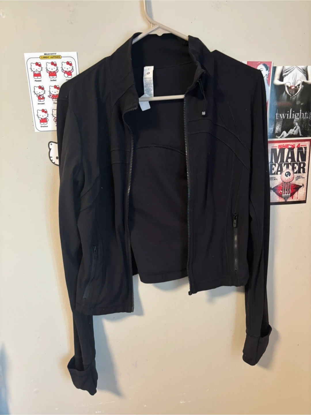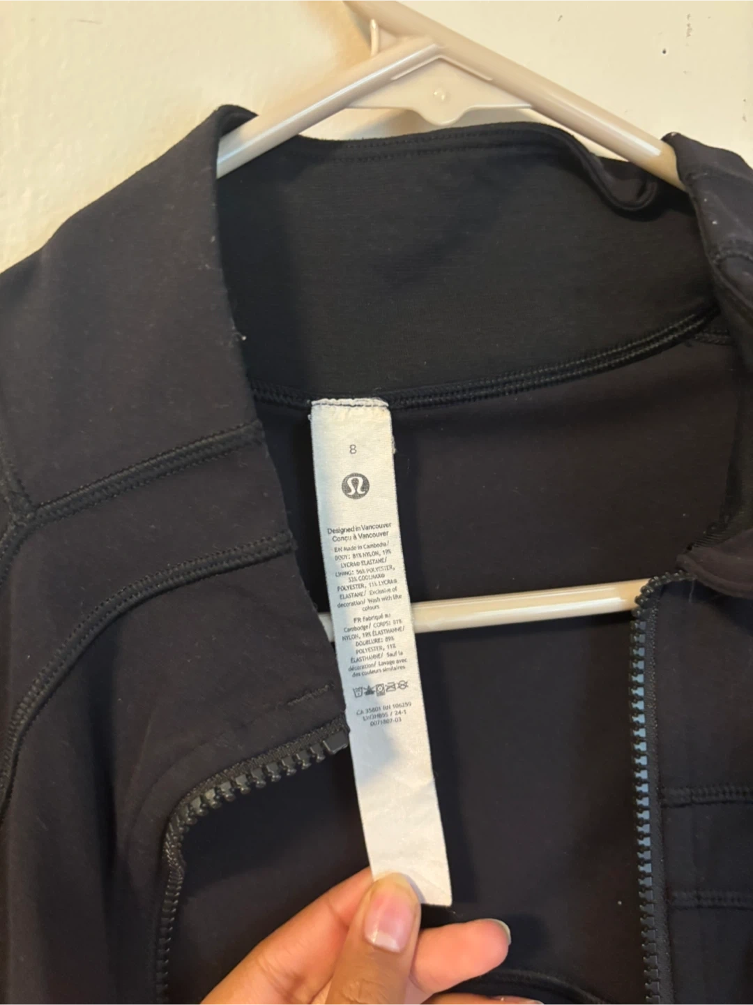 Selling a Lululemon Define Jacket in black, size 8. It's in great condition. Barely worn but need to sell because I’m cleaning my closet & need cash. Price is negotiable so dm!