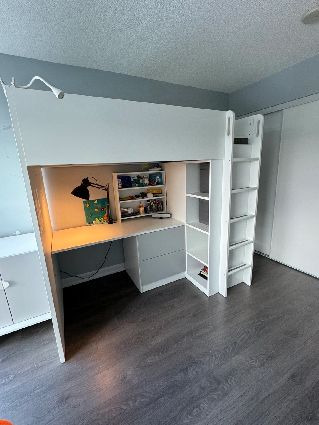 IKEA SMÅSTAD Loft Bed with Desk - White/Gray