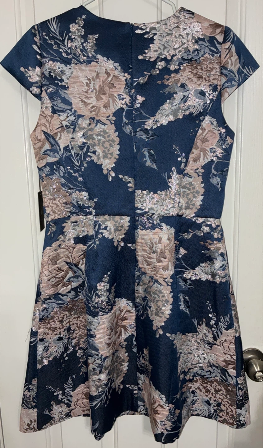 New Vince Camuto Metallic fit and flare Blue Floral Dress