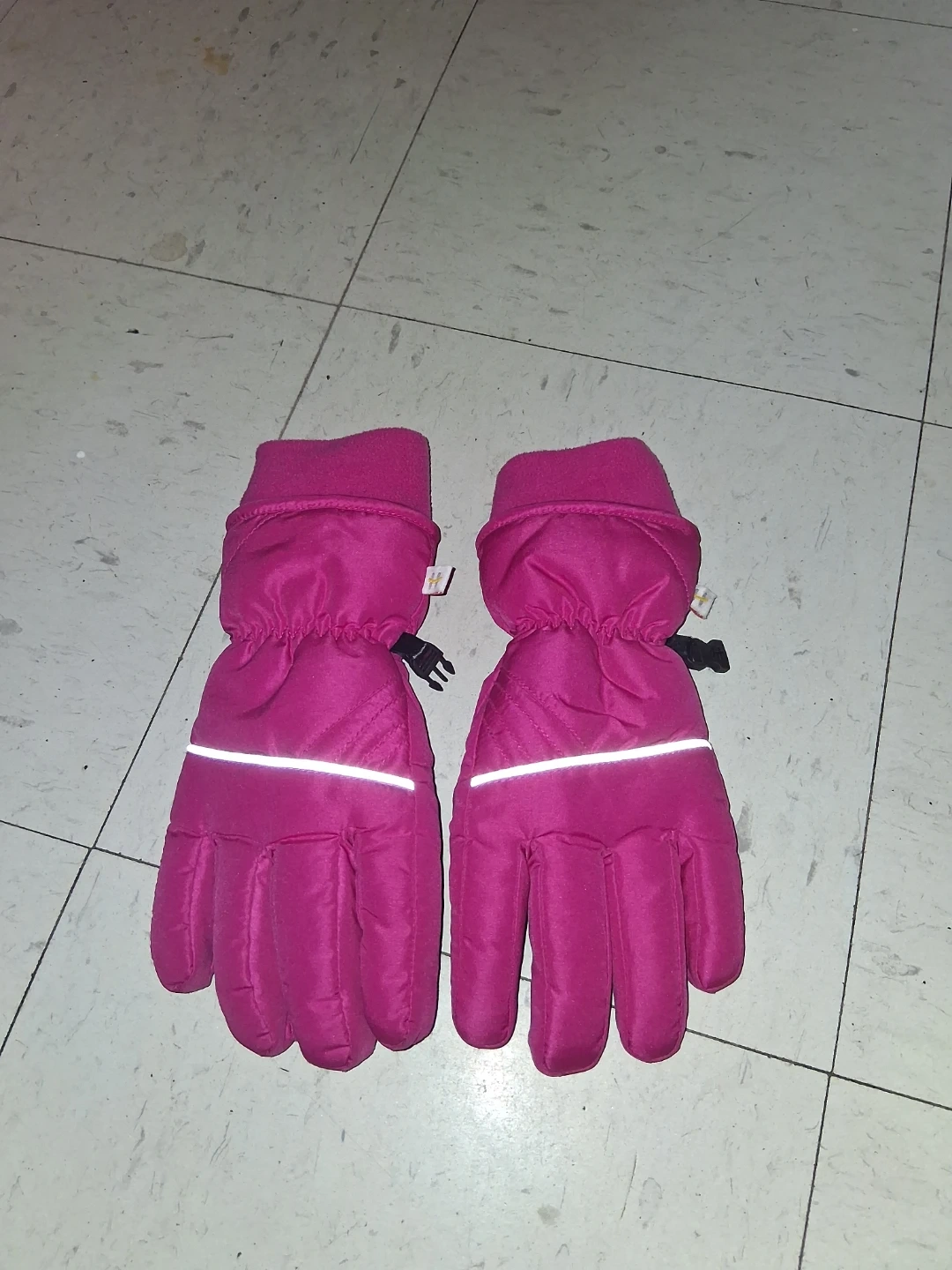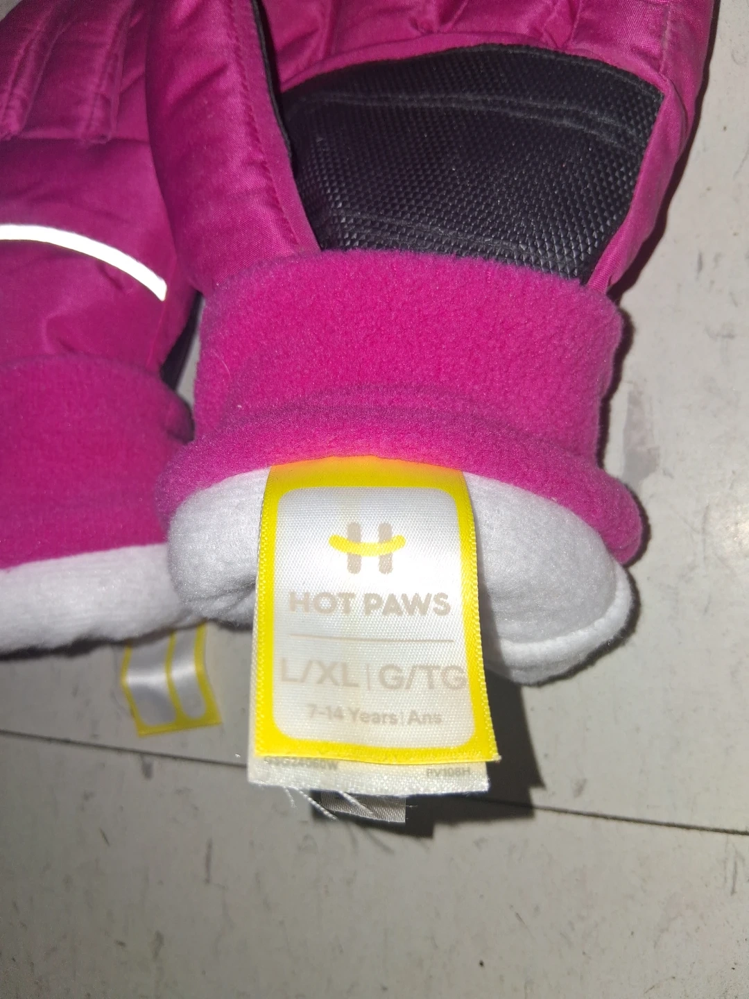 Keep your little one's hands warm with these Hot Paws ski mittens. They're bright pink and feature a fleece lining for extra coziness. Size is L/XL, recommended for ages 7-14 years. The mittens have reflective accents for visibility. They're great for winter activities!