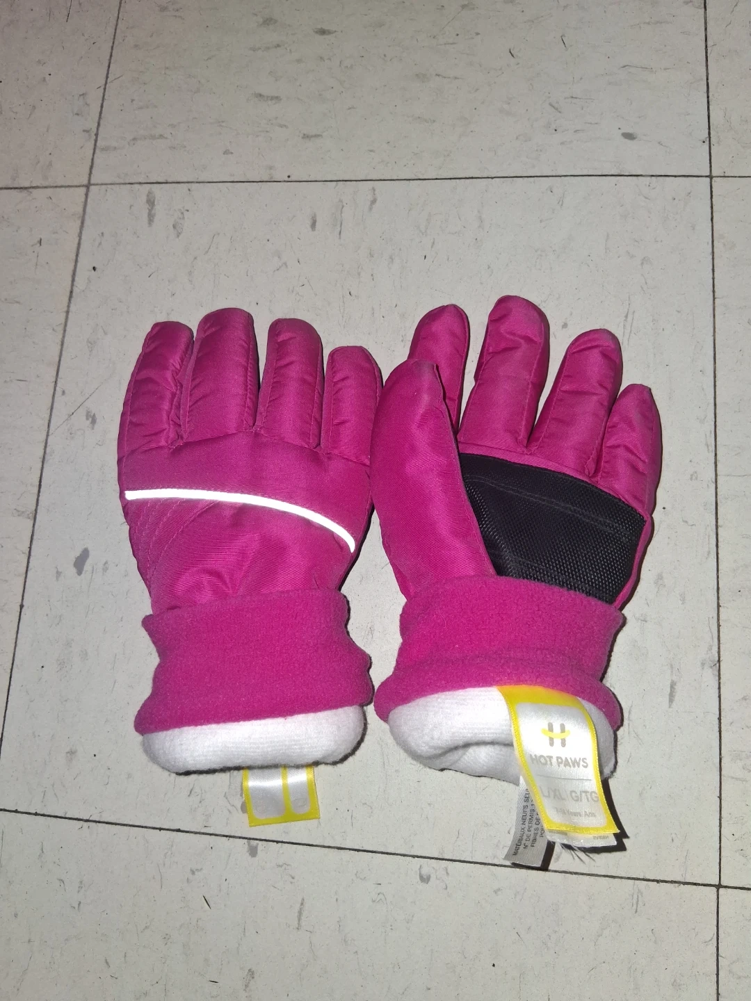 Keep your little one's hands warm with these Hot Paws ski mittens. They're bright pink and feature a fleece lining for extra coziness. Size is L/XL, recommended for ages 7-14 years. The mittens have reflective accents for visibility. They're great for winter activities!
