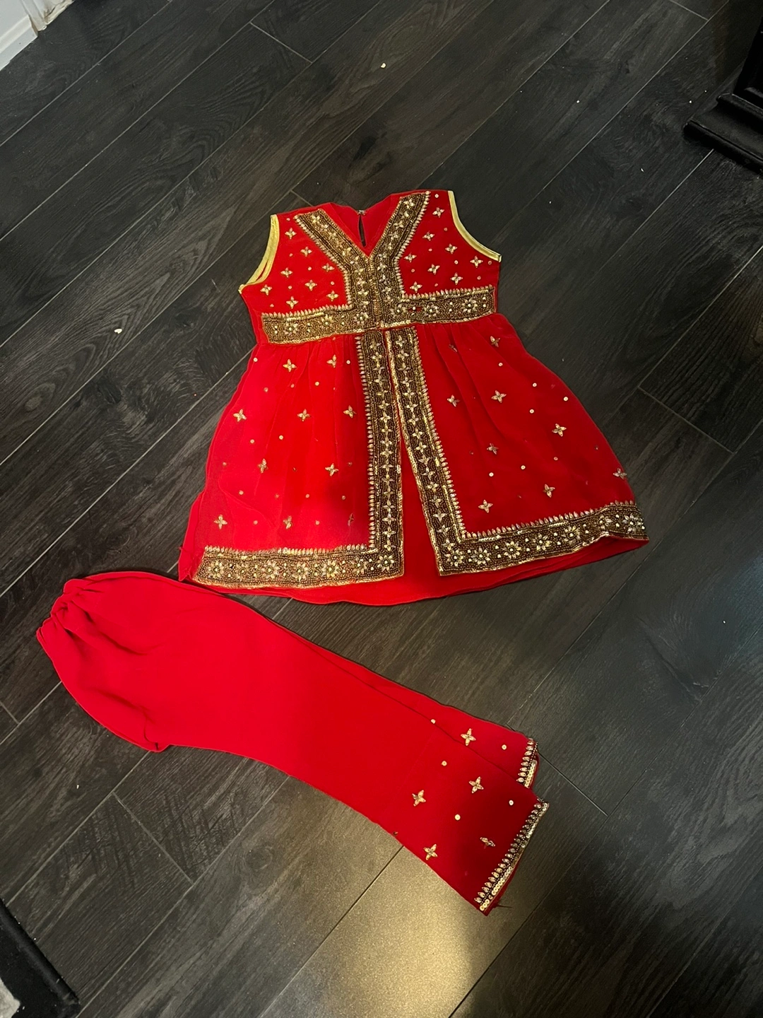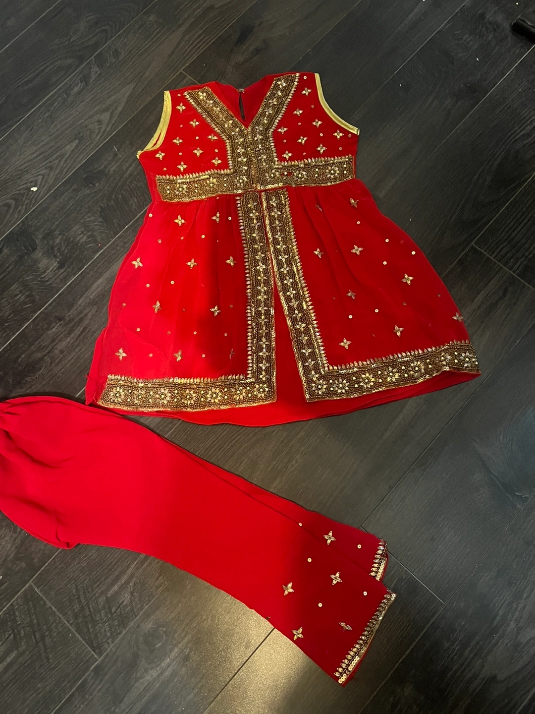 Red Girls' Outfit with Gold Embellishments 2 to 4 years girls