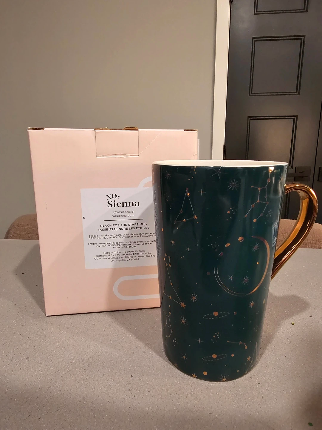 XO, Sienna Reach for the Stars mug in excellent condition! It comes with the original box. The mug features a beautiful constellation design. Perfect for coffee or tea!