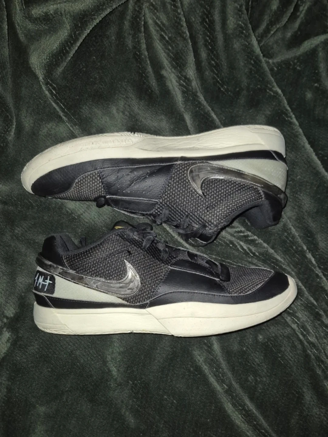 These are JA 1 Nike basketball shoes. They feature a mesh and leather upper with a durable rubber sole. These shoes are great for playing basketball.