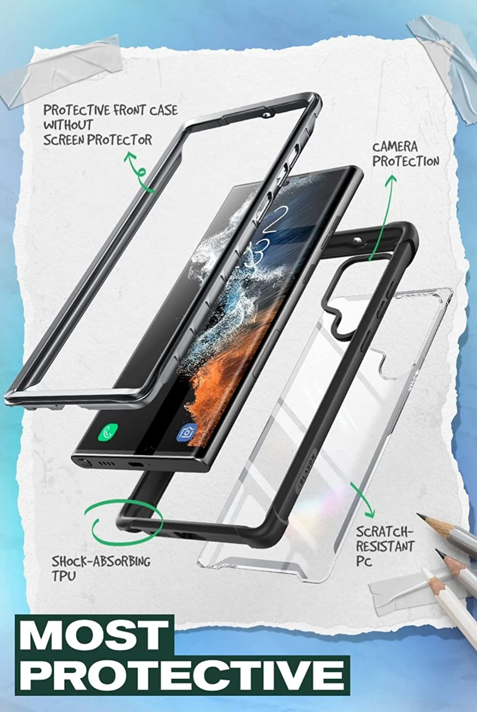 i-Blason Ares Galaxy S22 Ultra case (Black)