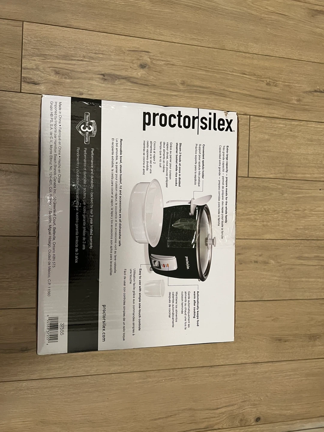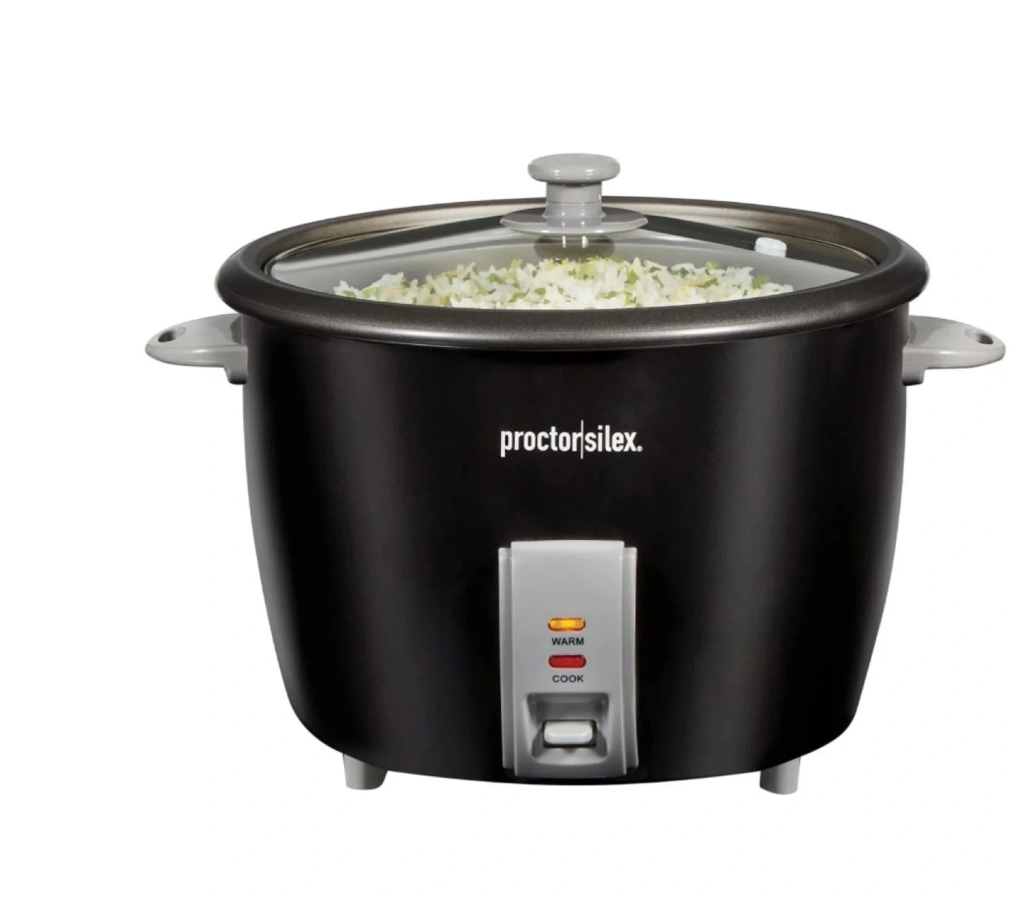 Proctor Silex rice cooker and steamer. Automatically keeps food warm after cooking. Easy to use with simple one-touch controls. Comes with a steaming basket.