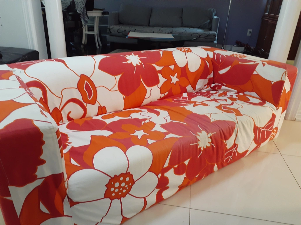 Ikea actual white color 3 seater sofa with free decor sofa cover included. Still in good condition, decluttering got another bigger sofa for home, so selling. no delivery please arrange for pick up.