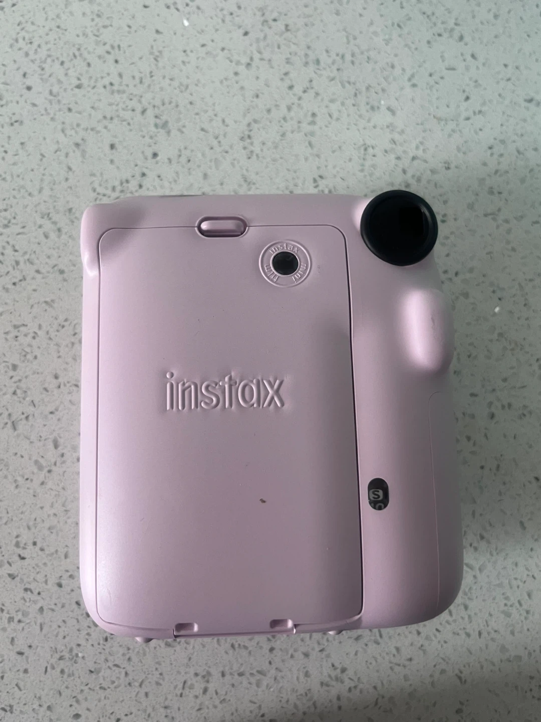 This is a Fujifilm Instax 12 Polaroid camera in pink. It features a 60mm lens with a focus range of 0.3m to infinity. It’s in great working condition as it has only been used a couple of times.