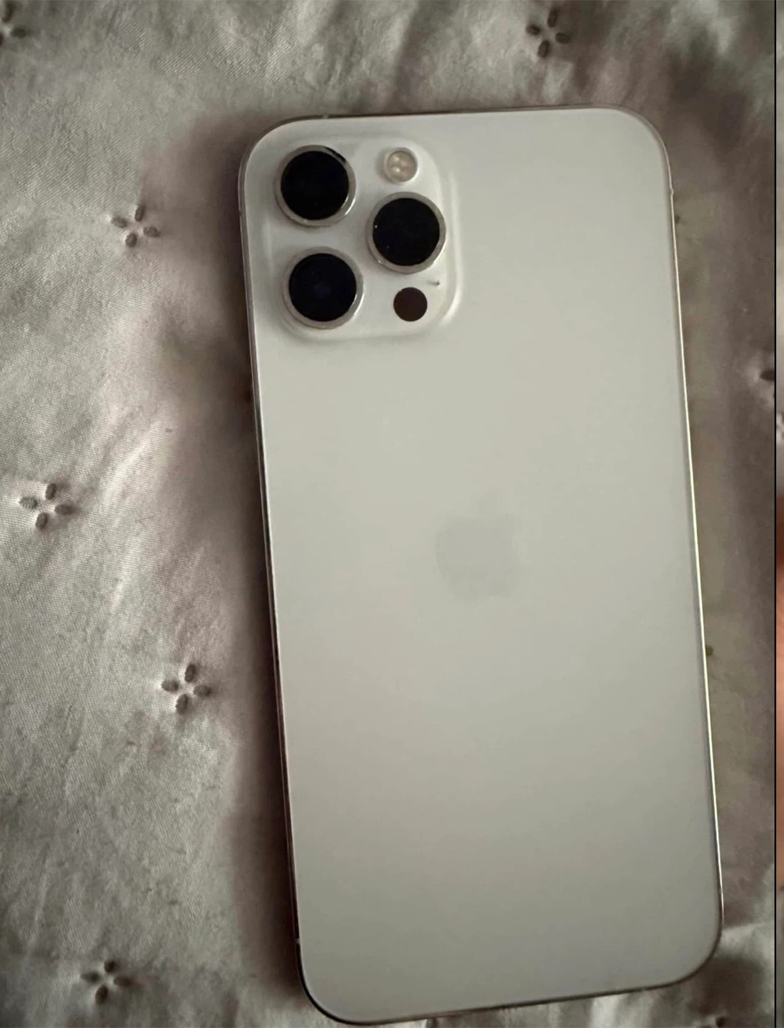 Selling an Apple iPhone 12 Pro max in silver. It's a a good condition phone with a clean screen the edge has a crack. Face ID works
