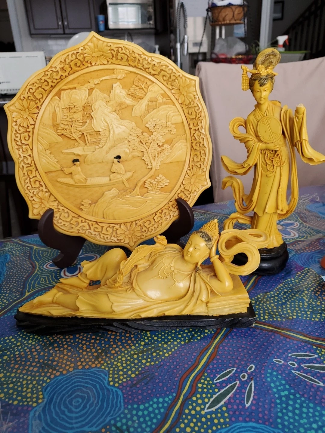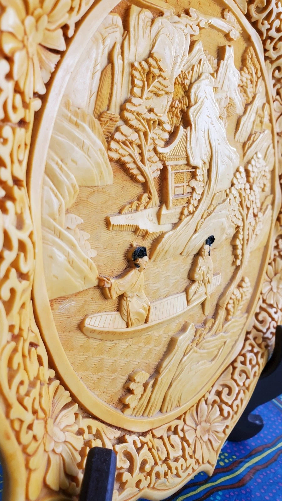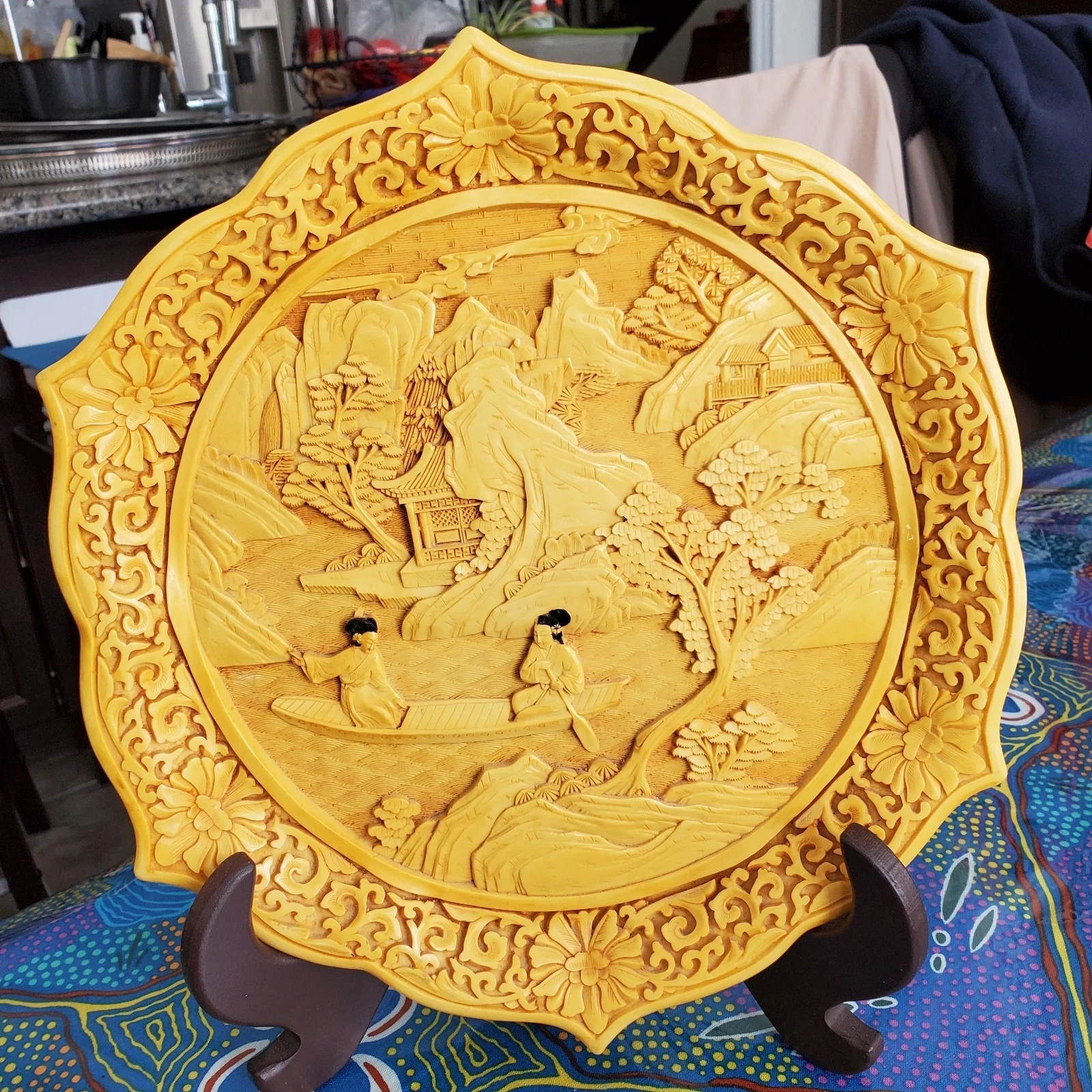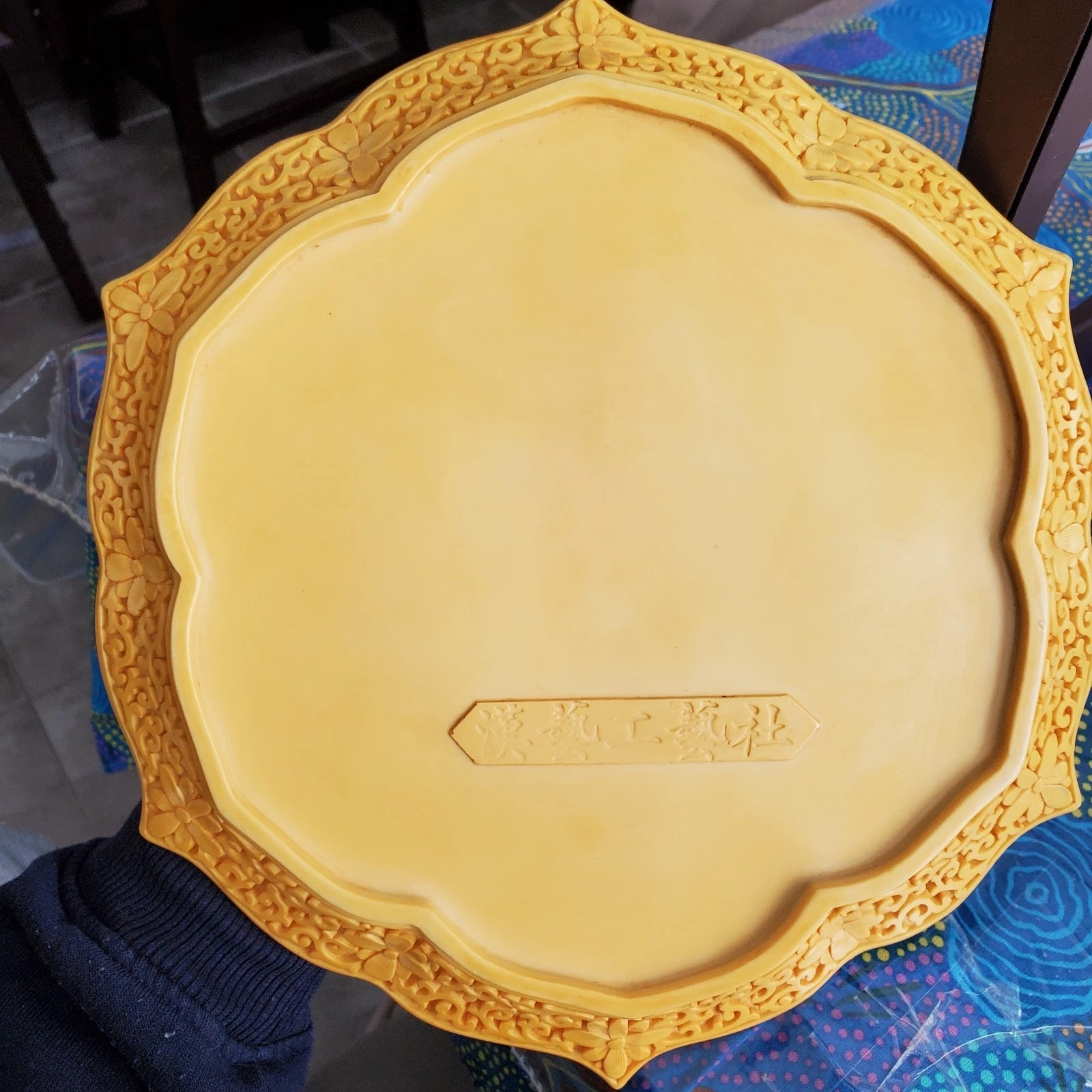 Carved decoartive plate, purchased by hand in the far East Asia in the 1900s (not sure exactly where or when). Potentially carved out of Cinnabar (not sure either). Goes well with set (see last photo and other 2 pieces listed).