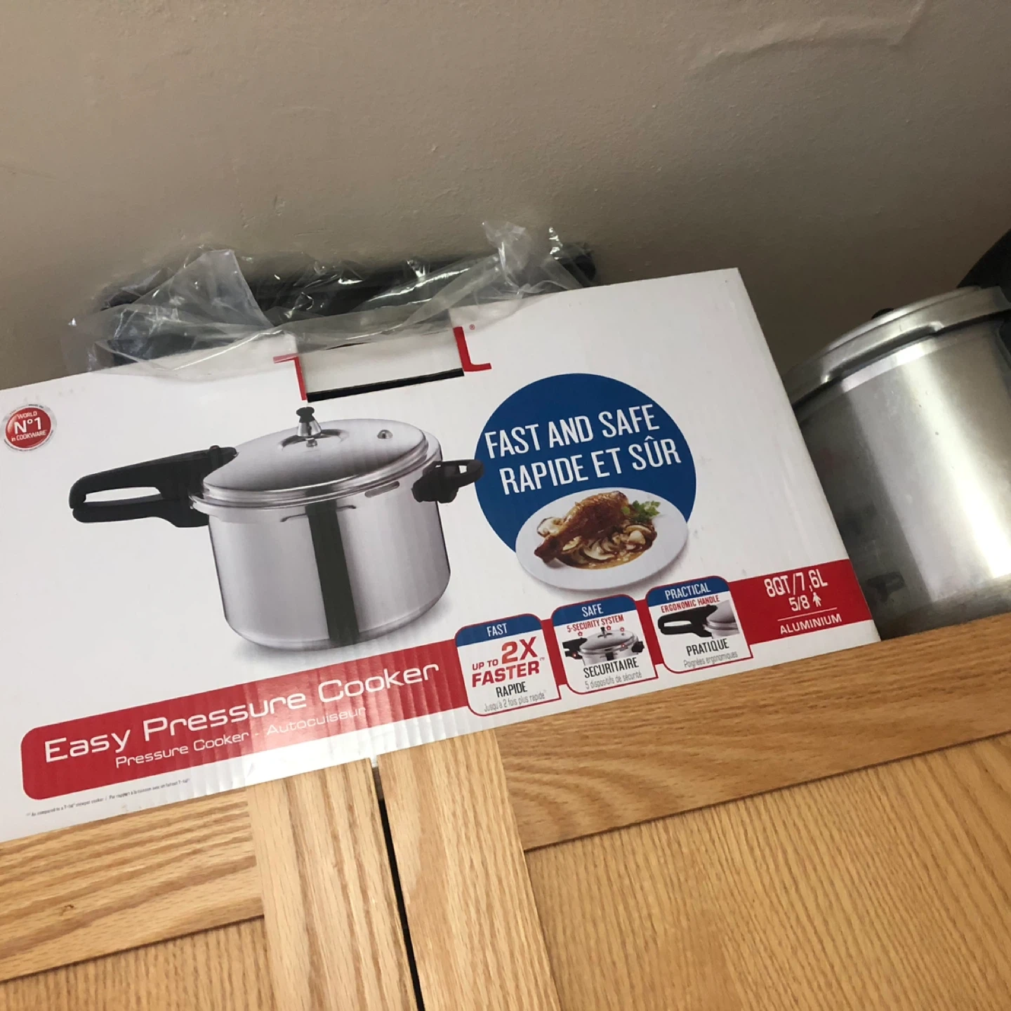 An Easy Pressure Cooker with a capacity of 8QT or 7.8L. It's made of aluminum and designed for fast cooking. Includes a 2 security system for safe operation.