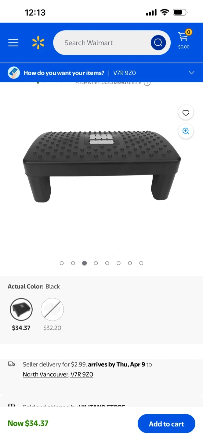 This is a black footrest designed for comfort. It has a textured surface with three rollers for foot massage. Its sturdy design supports your feet while sitting at a desk.