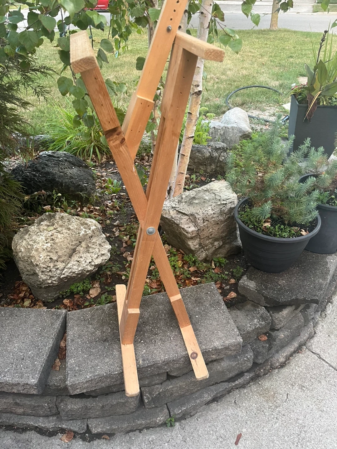 Portable wooden keyboard easel, folds flat for easy storage. It's made of natural wood and features an adjustable height mechanism. It's useful for keyboards who need a stable surface.
