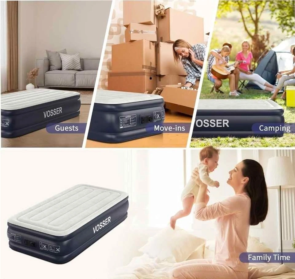 VOSSER air mattress is ideal for various sleep needs. Hosting guests overnight? Offers a cozy bed in minutes. Family or friend visits? They will enjoy their superior comfort. Are you planning an outdoor adventure or camping trip. Its portability ensures restful sleep under the stars. Even during a move, it offers a reliable and fast bed option. Also, it makes a wonderful gift for anyone who values comfort and comfort.