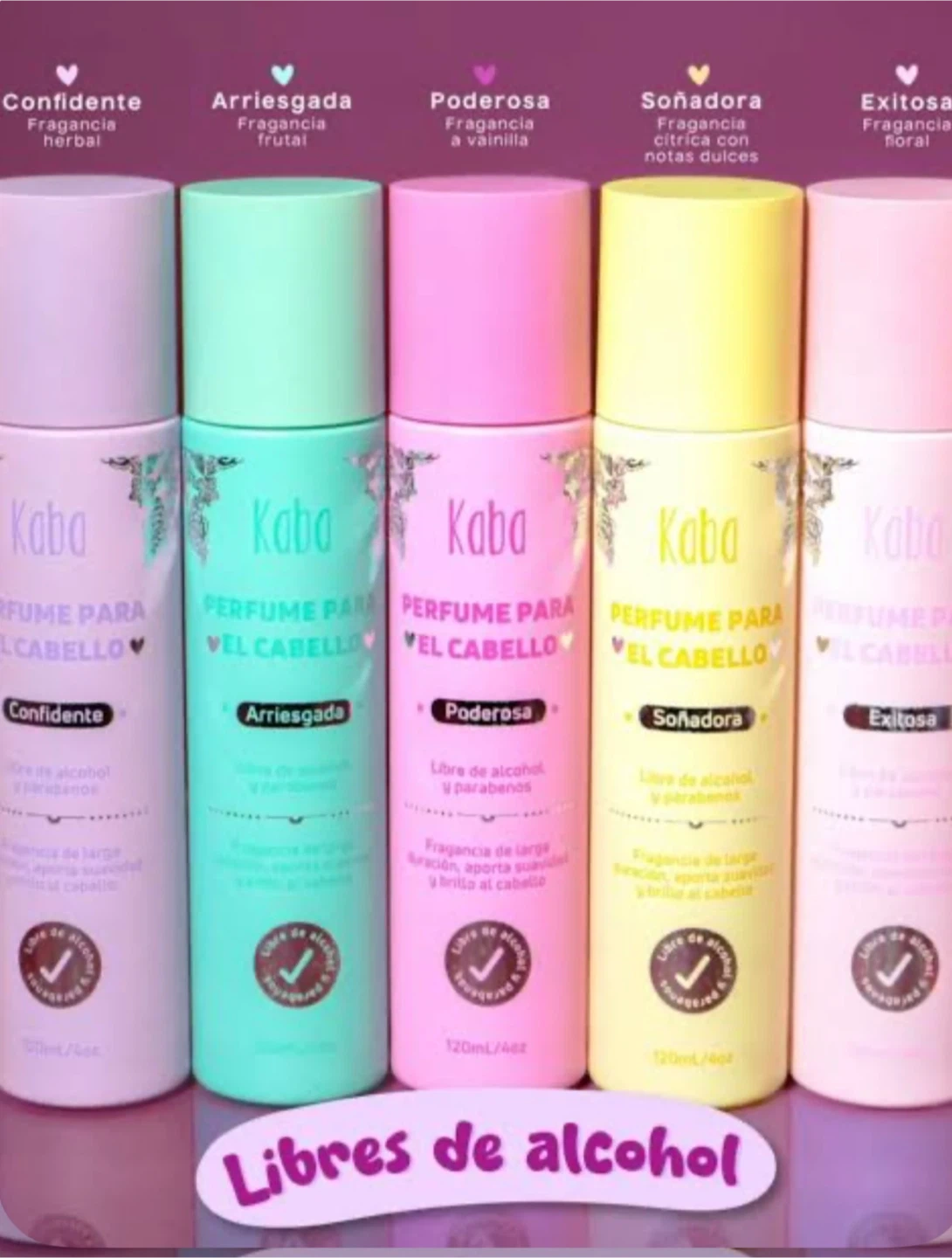 This is Kaba Perfume para el Cabello hair fragrance. It's alcohol and paraben-free. Long-lasting fragrance that adds shine.