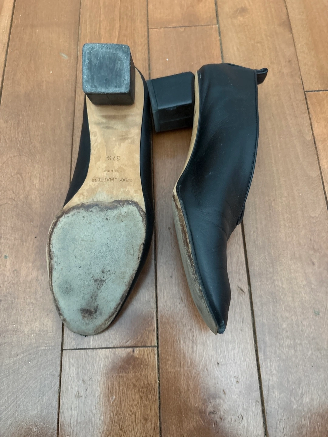 GRAY MATTERS Black Leather V-Cut Block Heels - Size 37.5