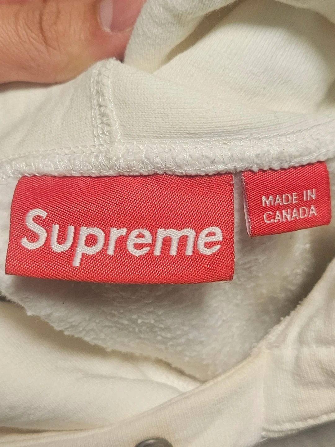 This Supreme hoodie was originally bought from GRAILED for around 500$ + Tax & Shipping. The hoodie has zero damages or flaws aside from small stains as I didn't wear it much as I intended, and the hoodie has all wash-tags & size labelling inside.