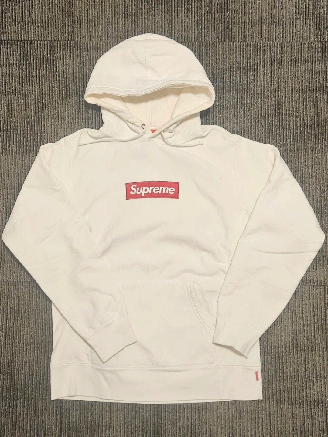 Authentic Supreme White Red Box Logo Men's Hoodie