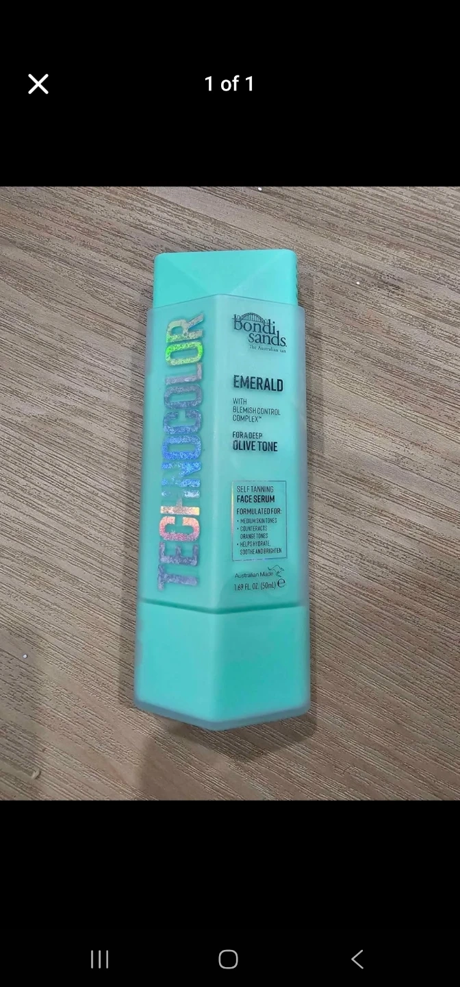 Bondi Sands Technicolor Emerald Self Tanning Face Serum for a deep olive tone. Formulated for medium skin tones, it counteracts orange tones, helps hydrate, soothe, and brighten. This serum contains a blemish control complex. Australian Made.