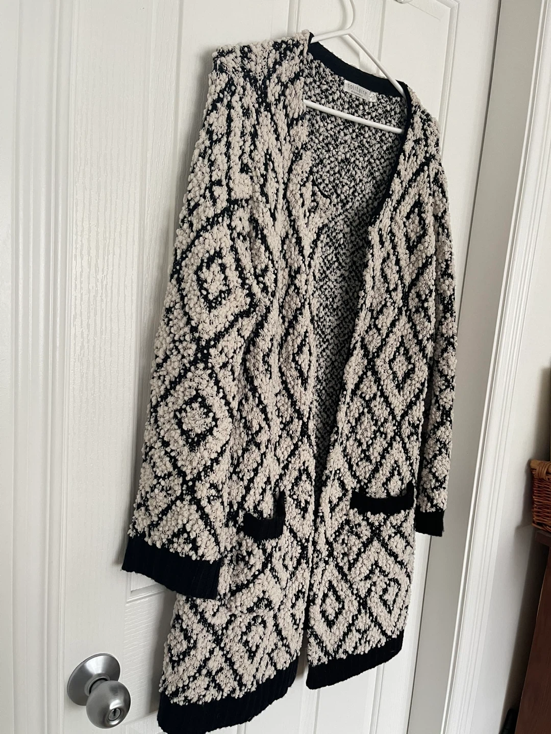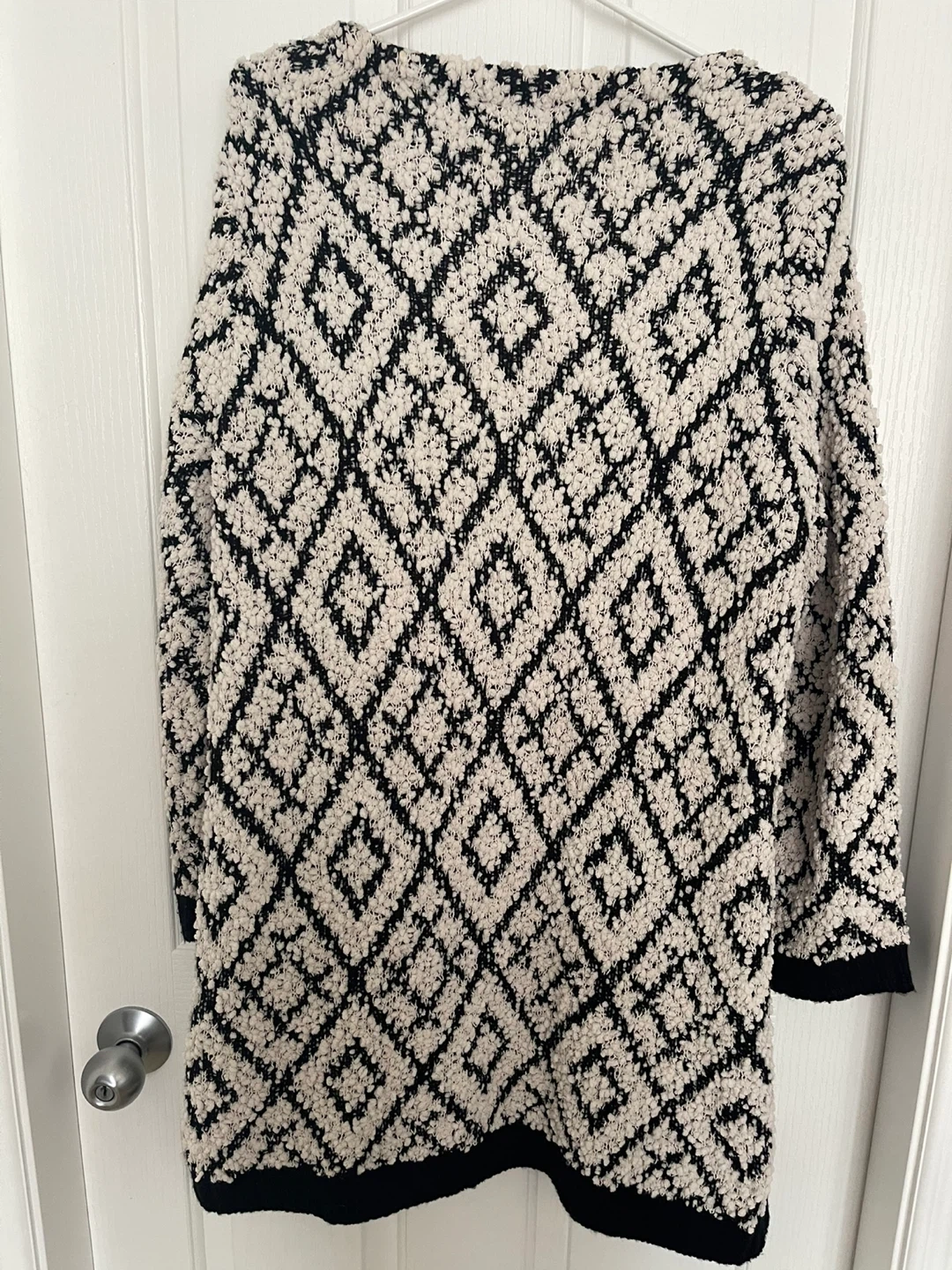 Black and Cream Diamond Pattern Cardigan