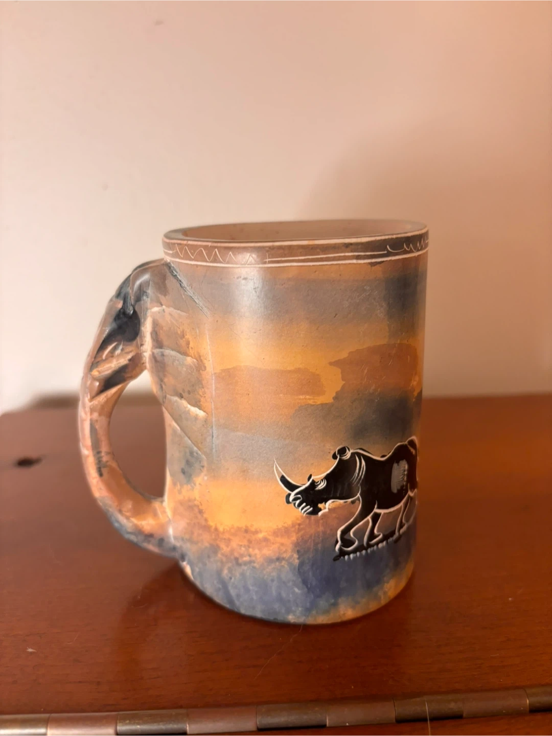 Hand-Painted Elephant Mug with Carved Handle