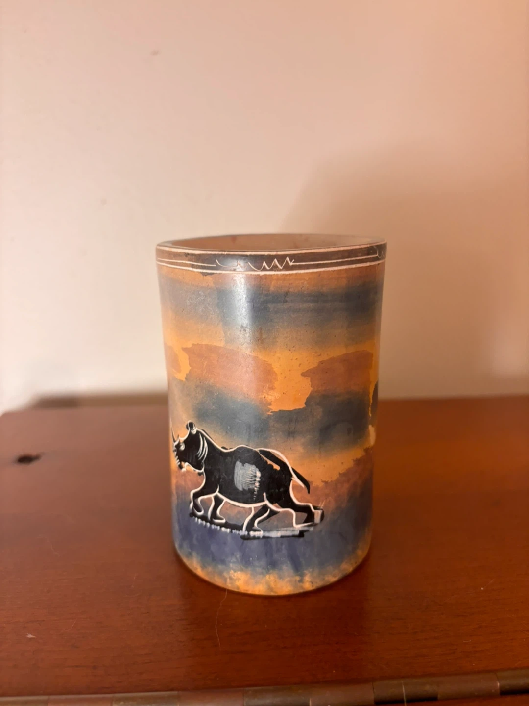 $45 or best offer - Beautiful, unique ceramic mug featuring a hand-carved elephant handle and hand-painted, earth-toned design. The elephant detail is sculpted directly into the handle, giving the piece a striking, tactile, almost sculptural quality you don’t see in mass-produced mugs.