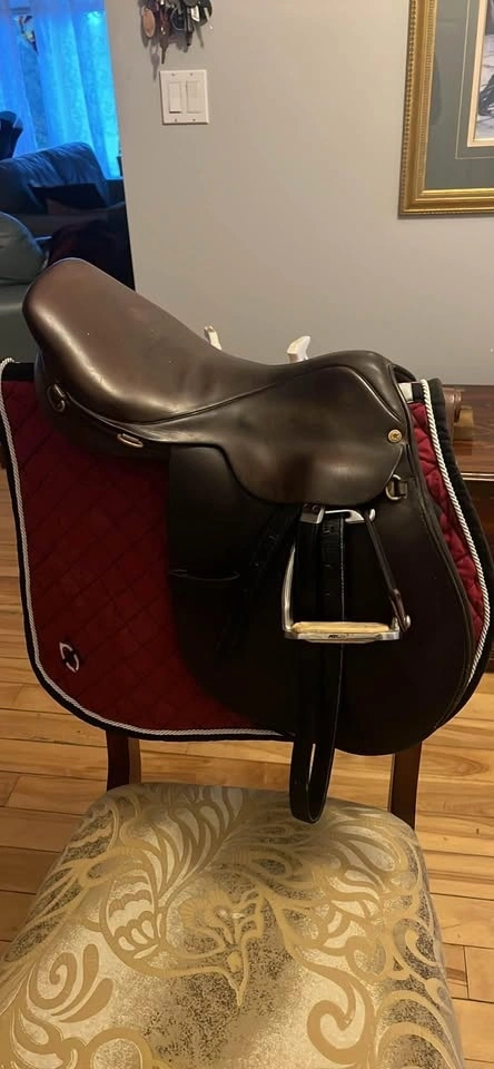 Buy & SellEnglish SaddleEnglish Saddle$250Nice English saddle for sale. Comes with safety stirrups and saddle pad. Seat is 16”, gullet is in the pictures. I believe it's 7”.WHERE TO MEETCheck LocationView MapSELLERKirstinCobourg100 reviews0 chats·0 favorites·4 viewsSEND CHAT TO SELLERHi Kirstin! I’m interested in your listing.Hi Kirstin! I’m interested in your listing.Get the Karrot app to chatSign In to chat