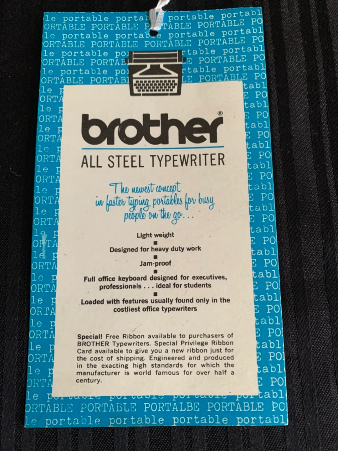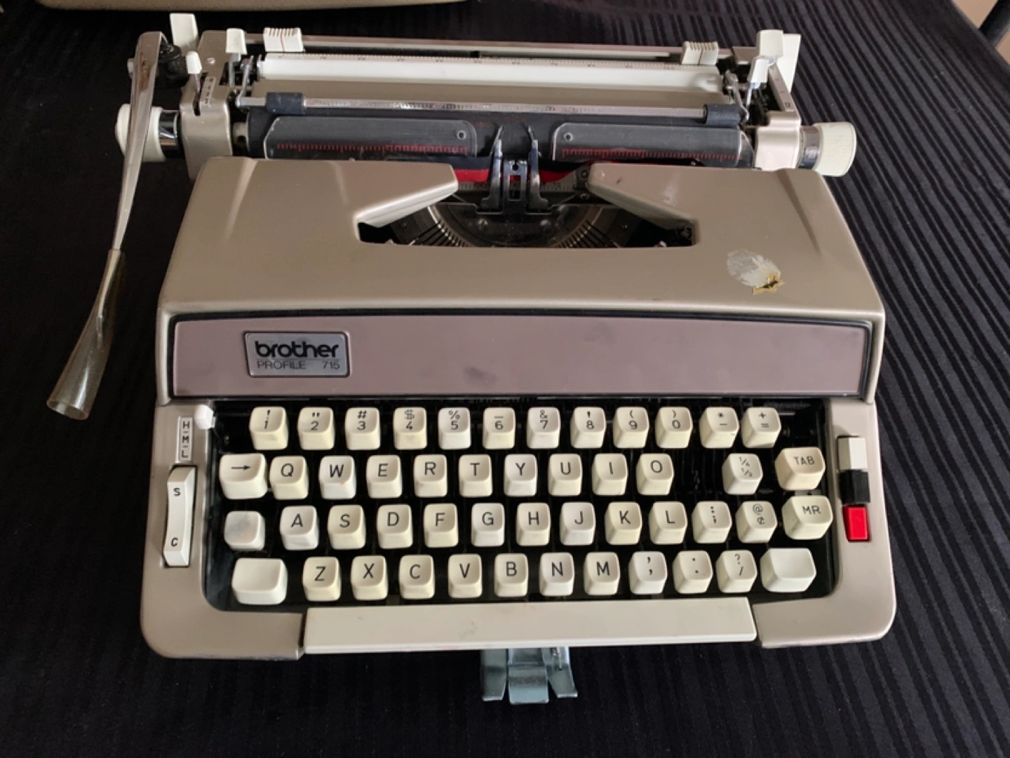 Vintage Brother model 715 portable typewriter. All steel construction. Includes carrying case and instruction manual. Ideal for collectors or writers.