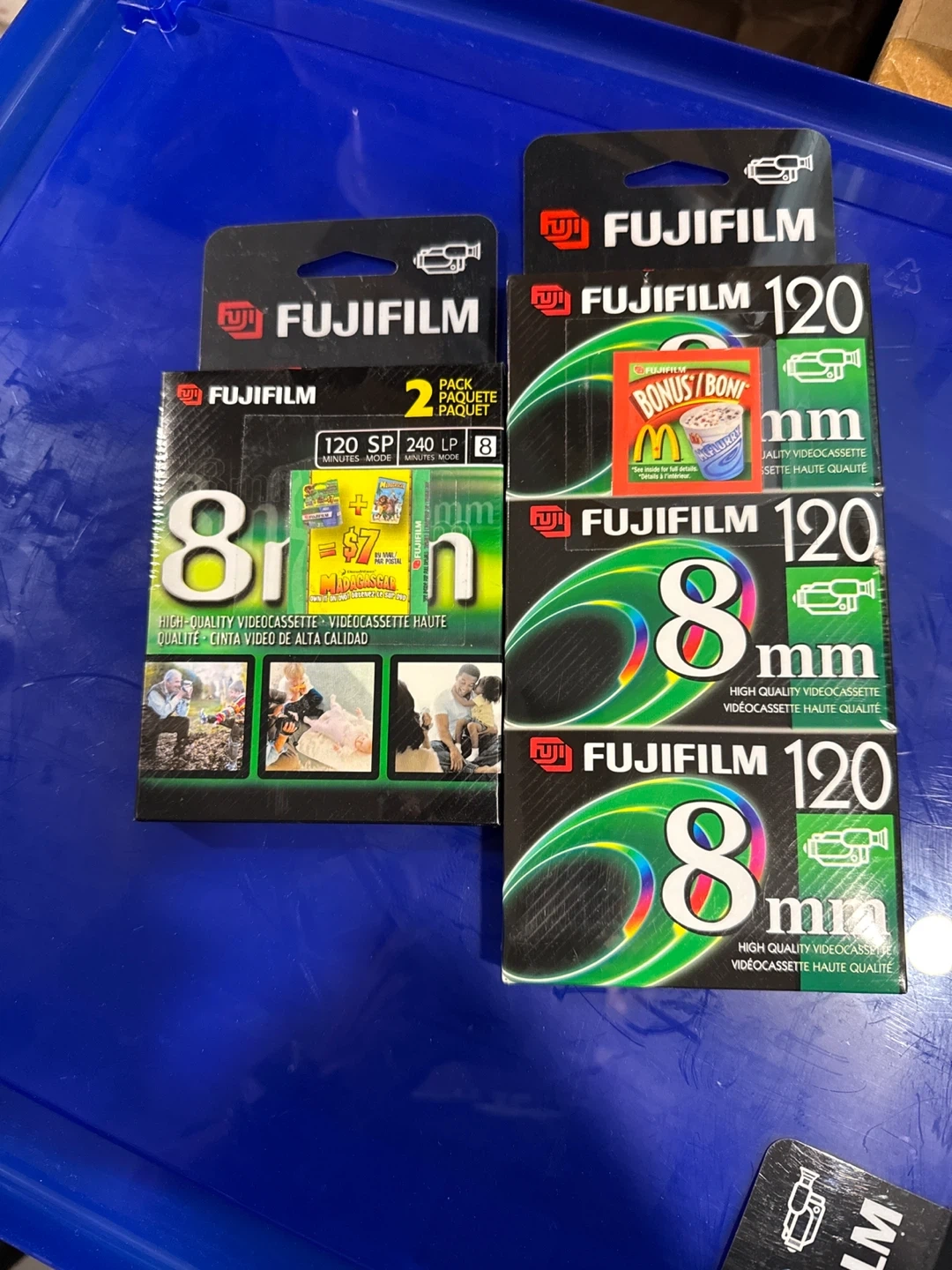 Includes one 2-pack of Fujifilm 8mm videocassettes and three individual Fujifilm 120 8mm videocassettes. The 2-pack offers 120 SP or 240 LP minutes. These are high-quality videocassettes.