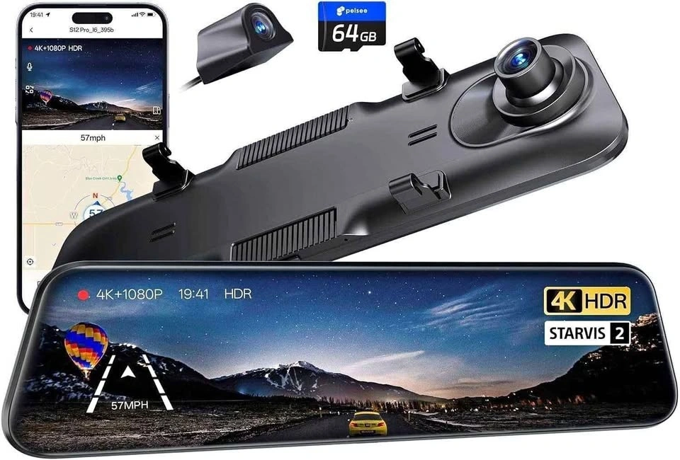 Pelsee S12 Pro 4K Rear View Mirror Camera