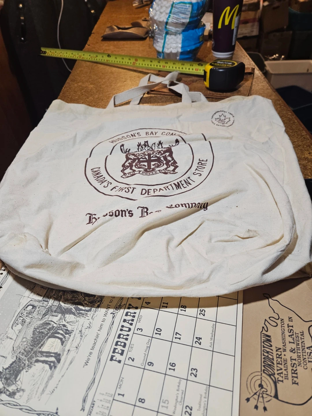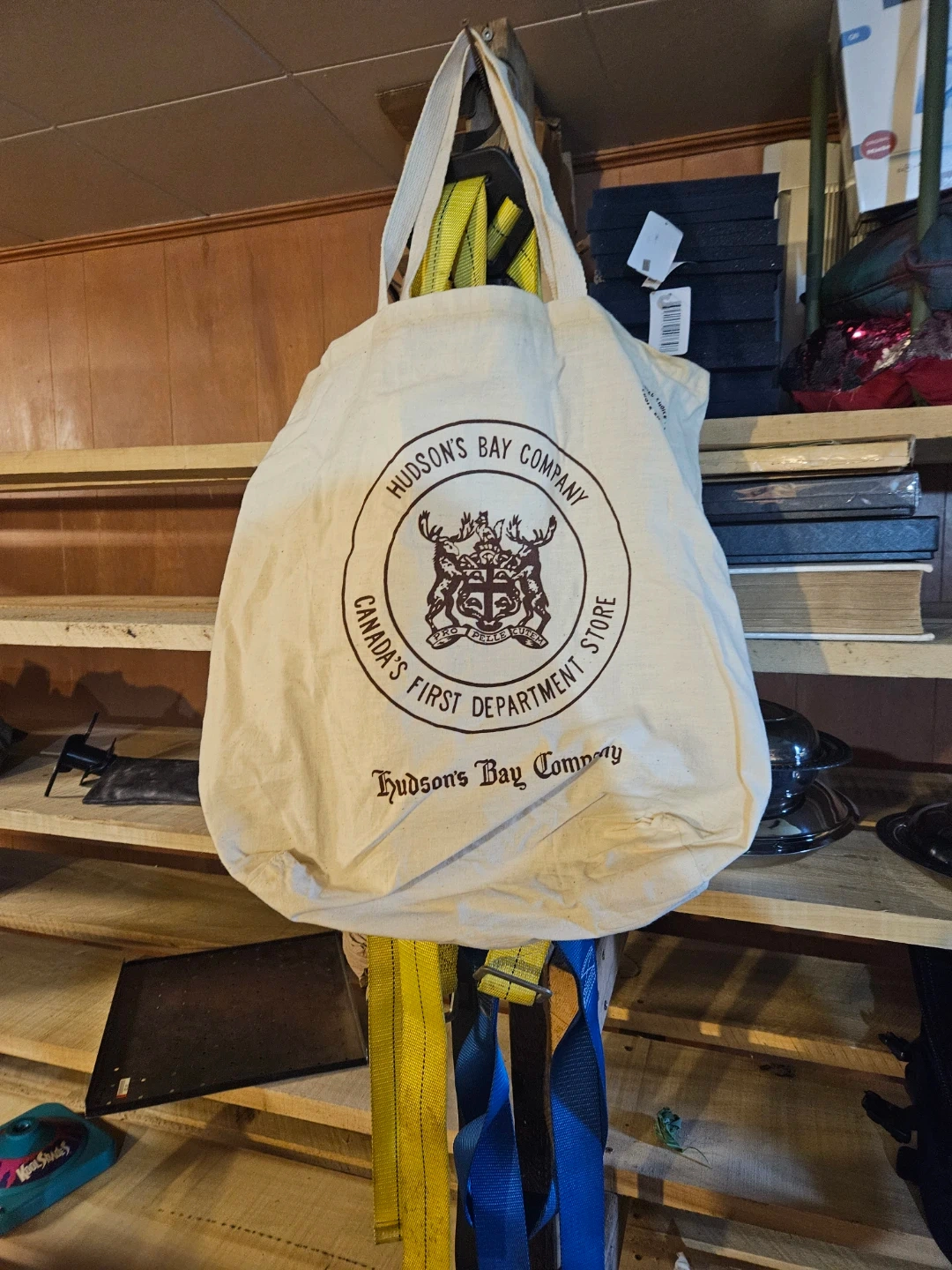 A reusable canvas tote bag featuring the classic Hudson's Bay Company logo. It's made of durable cotton canvas. Perfect for everyday shopping or carrying essentials.