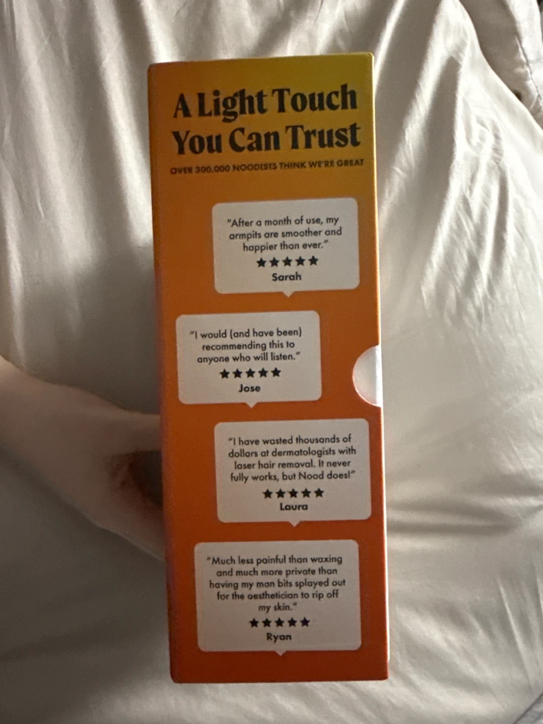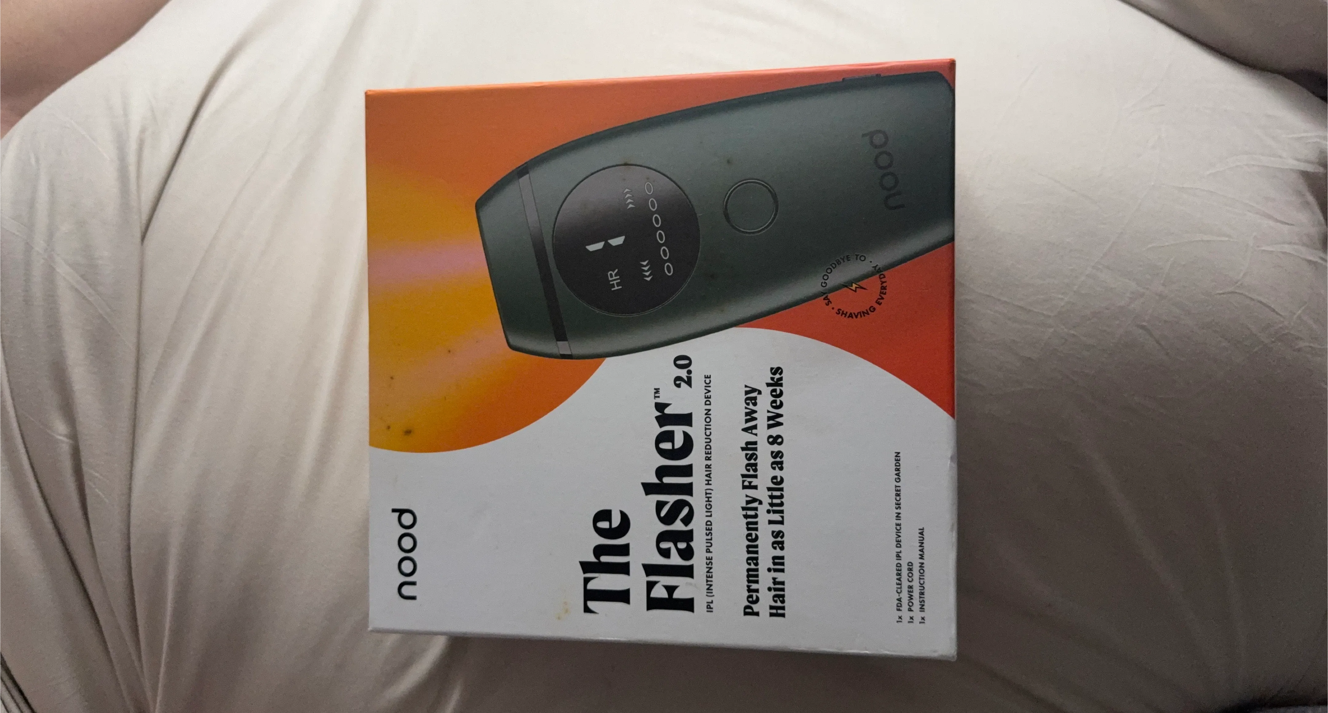 Permanently flash away hair with the Nood The Flasher 2.0 IPL device. This FDA-cleared device includes the IPL device, power cord, and instruction manual. It helps reduce hair in as little as 8 weeks!