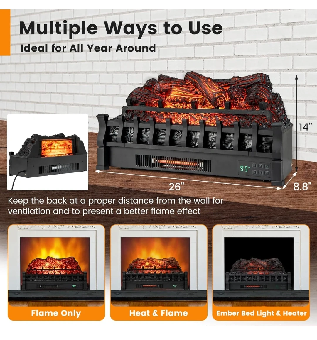 26 inch Eternal Flame Electric Fireplace/heater Realistic Pinewood Ember Bed, Remote Control - 1500W