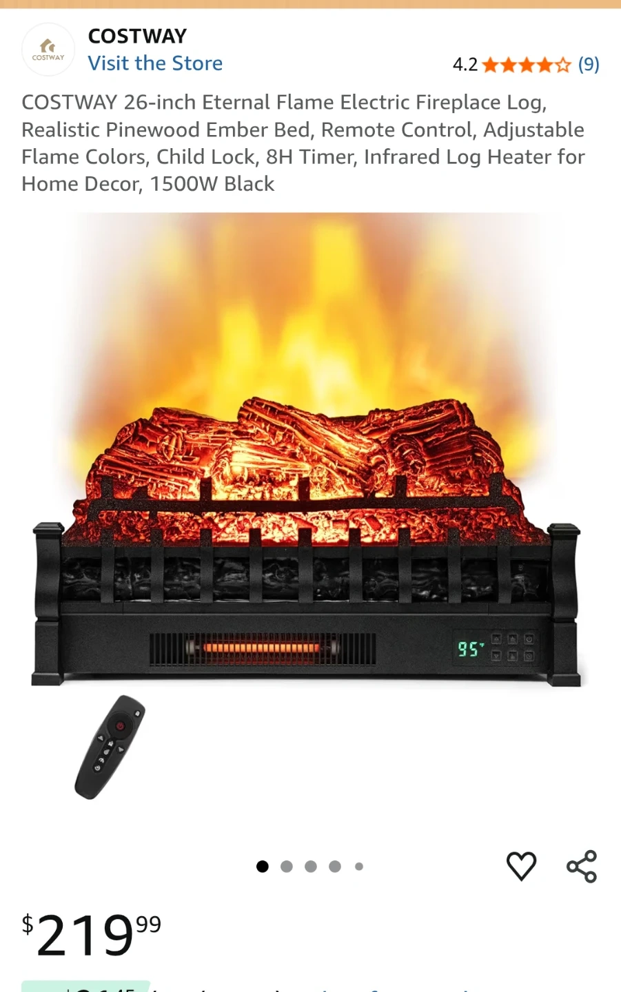26 inch Eternal Flame Electric Fireplace/heater Realistic Pinewood Ember Bed, Remote Control - 1500W