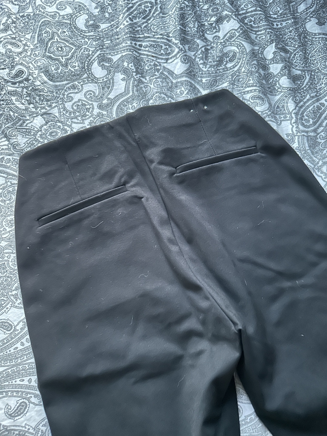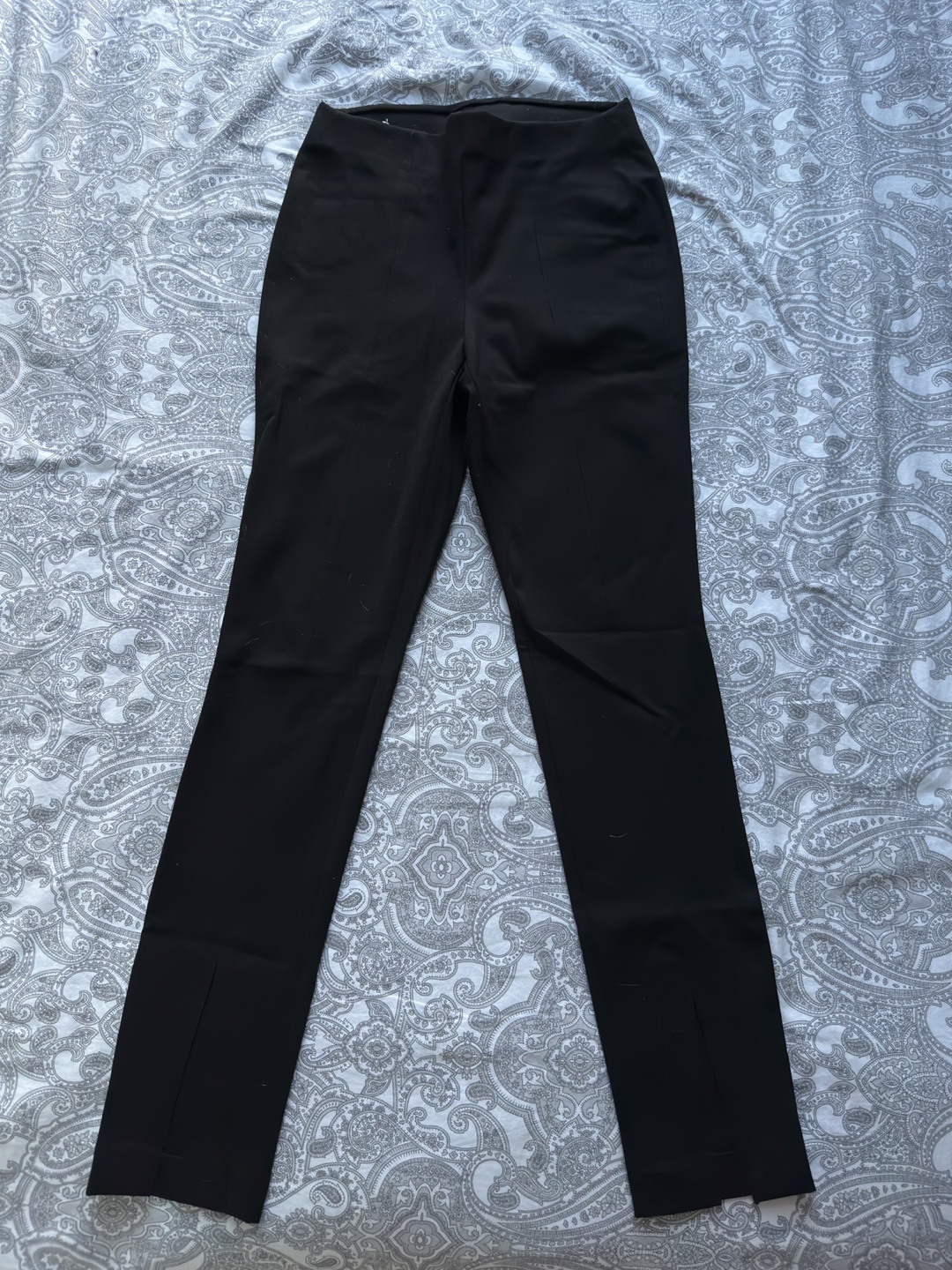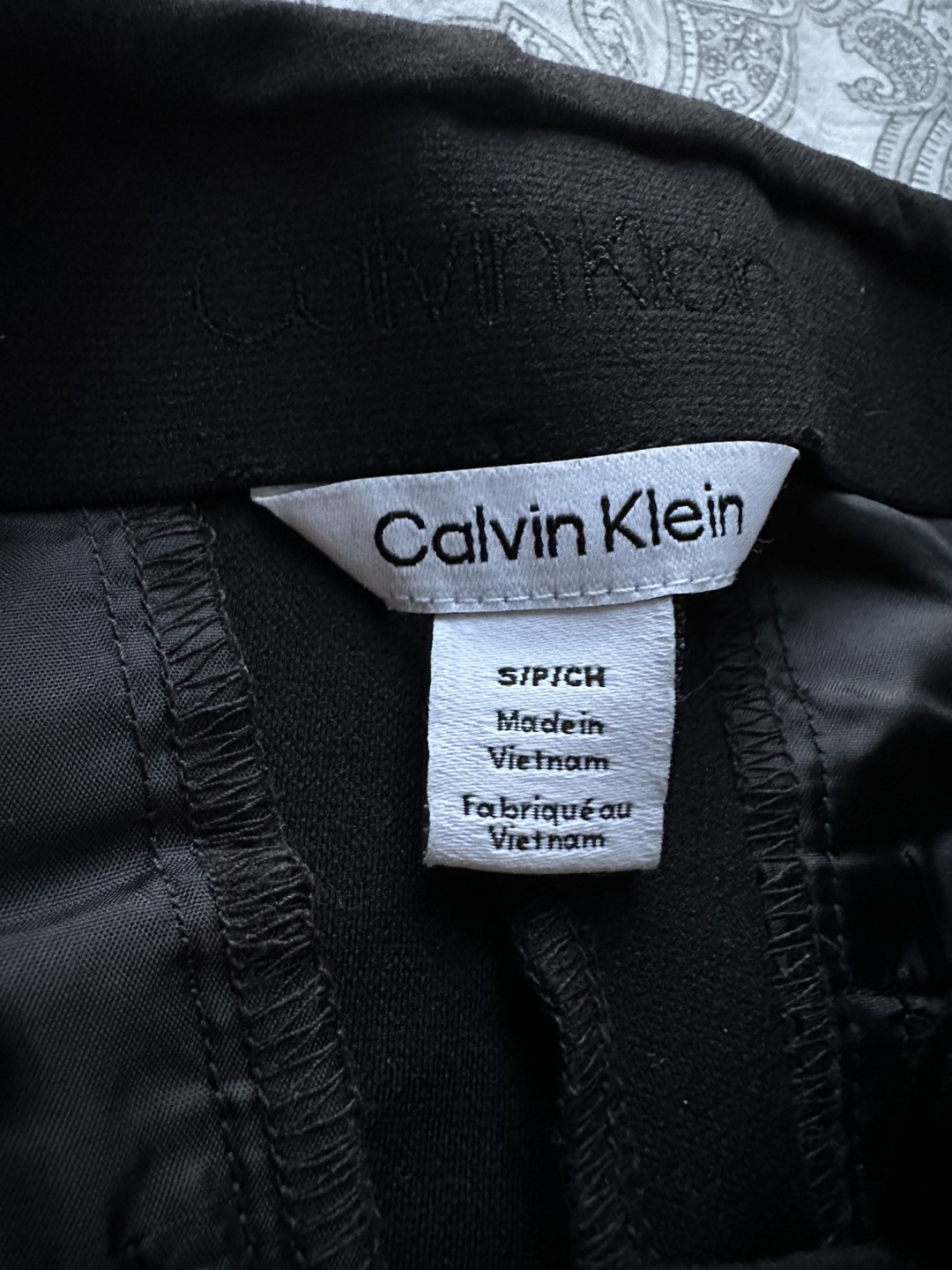 Selling a pair of Calvin Klein black pants in size small. They're in great condition and feature a stylish slit detail at the bottom. Perfect for dressing up or down!