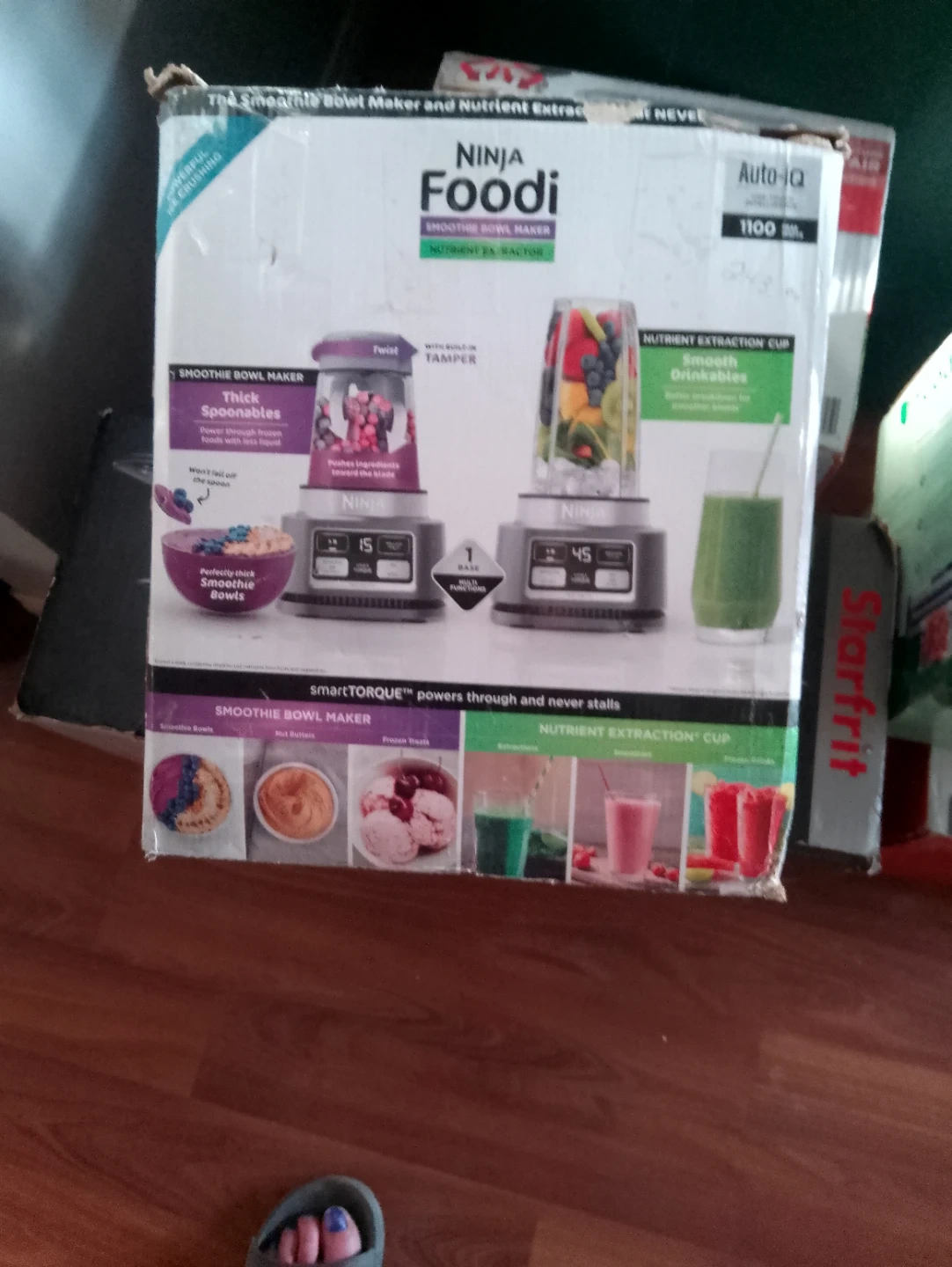This Ninja Foodi is a smoothie bowl maker and nutrient extractor. It has Auto-IQ with 1100 watts of power and smartTORQUE technology. It's great for making thick smoothie bowls and smooth drinks.